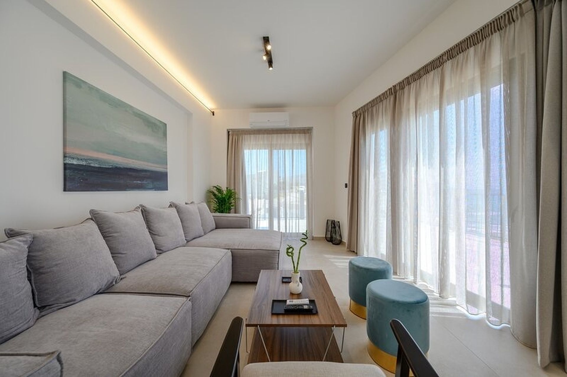 Η Βίλα είναι νεόδμητη, μοντέρνας αρχιτεκτονικής και σχεδιασμού και διαθέτει 2 επίπεδα.Στο ισόγειο οι χώροι είναι ανοιχτοί και φωτεινοί, περιλαμβάνοντας ένα ευρύχωρο σαλόνι, τραπεζαρία και πλήρως εξοπλισμένη κουζίνα, με πανοραμική θέα στη θάλασσα.