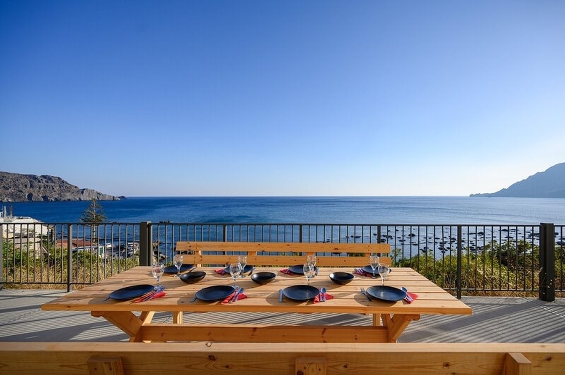 Ο περιφραγμένος χώρος προσφέρει ασφάλεια και ιδιωτικότητα, ενώ η εκπληκτική θέα στο κρητικό πέλαγος προσδίδει μια μοναδική αίσθηση χαλάρωσης.
