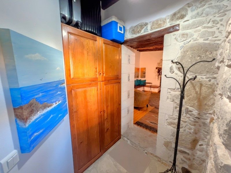Σε αυτή την μεζονέτα τριών επιπέδων κυριαρχεί η πέτρα και το ξύλο, όπου σε συνδυασμό με την ολιγόλεπτη απόσταση προς τις παραλίες της περιοχής, τη κάνει ιδανική επιλογή για εξοχική ή μόνιμη κατοικία ή επένδυση.