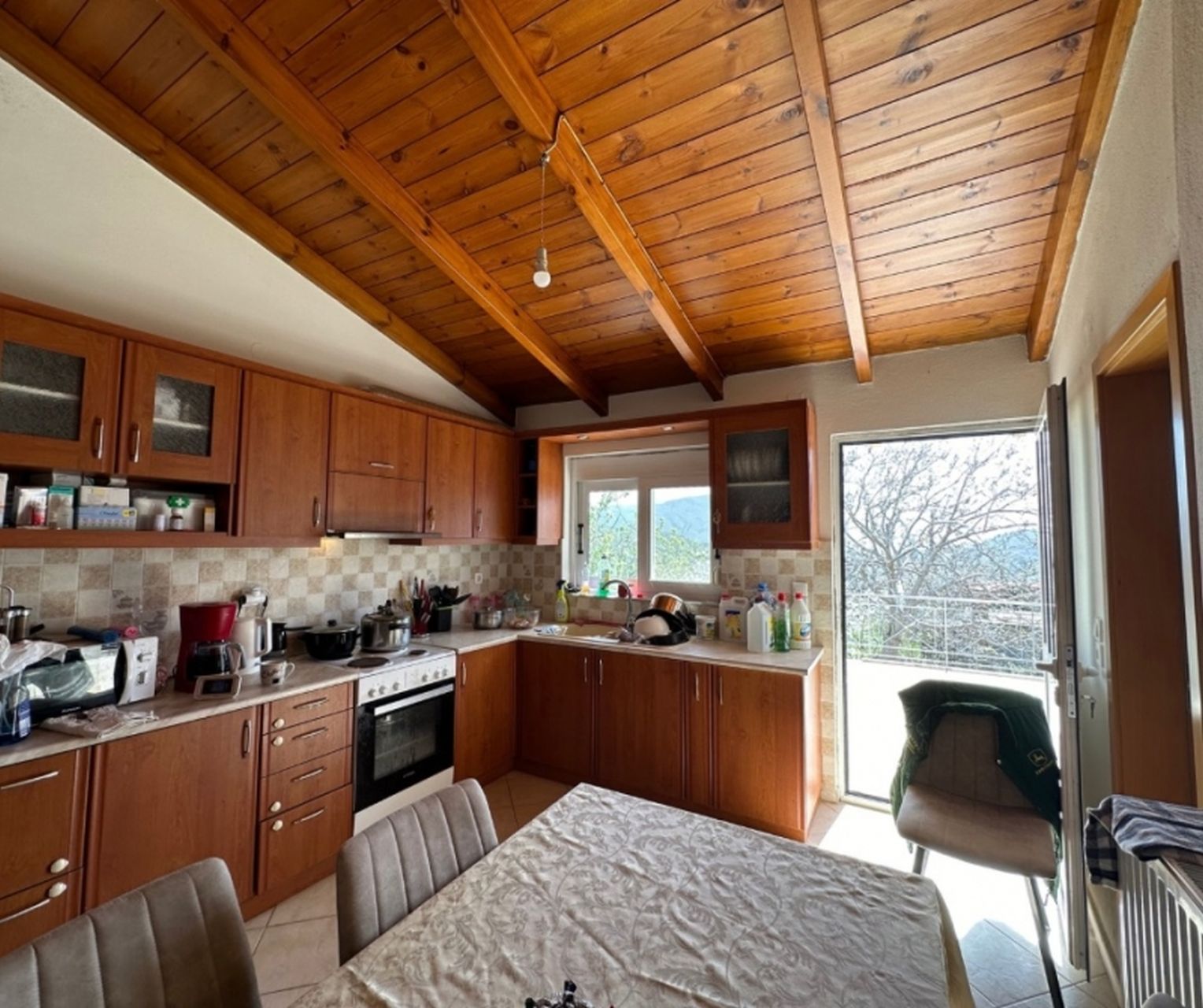 Στην είσοδο του ακινήτου βρίσκεται ένας ανοιχτός χώρος, ο οποίος βρίσκεται ανάμεσα στο κτήριο και στον δρόμο του χωριού. Ο πρώτος όροφος αποτελείται από ένα ευρύχωρο σαλόνι με τζάκι, ένα wc αλλά και τον χώρο της κουζίνας, η οποία έχει πρόσβαση στο μεγάλο μπαλκόνι, το οποίο βλέπει το χωριό αλλά και το βουνό του Ψηλορείτη. Κατεβαίνοντας την εσωτερική σκάλα, βρισκόμαστε στο ισόγειο, όπου βρίσκονται δύο υπνοδωμάτια, ένα μπάνιο και μία αποθήκη 33τμ. Τα υπνοδωμάτια διαθέτουν σώματα θέρμανσης και είναι πλήρως επιπλωμένα. Η μονοκατοικία, είναι ιδανική για ιδιοκατοίκηση αλλά και για εκμετάλλευση, καθώς υπάρχει ζήτησης κατοικιών στη περιοχή, ένα δραστήριο χωριό του Ρεθύμνου, το οποίο φημίζεται για την ιστορία του.