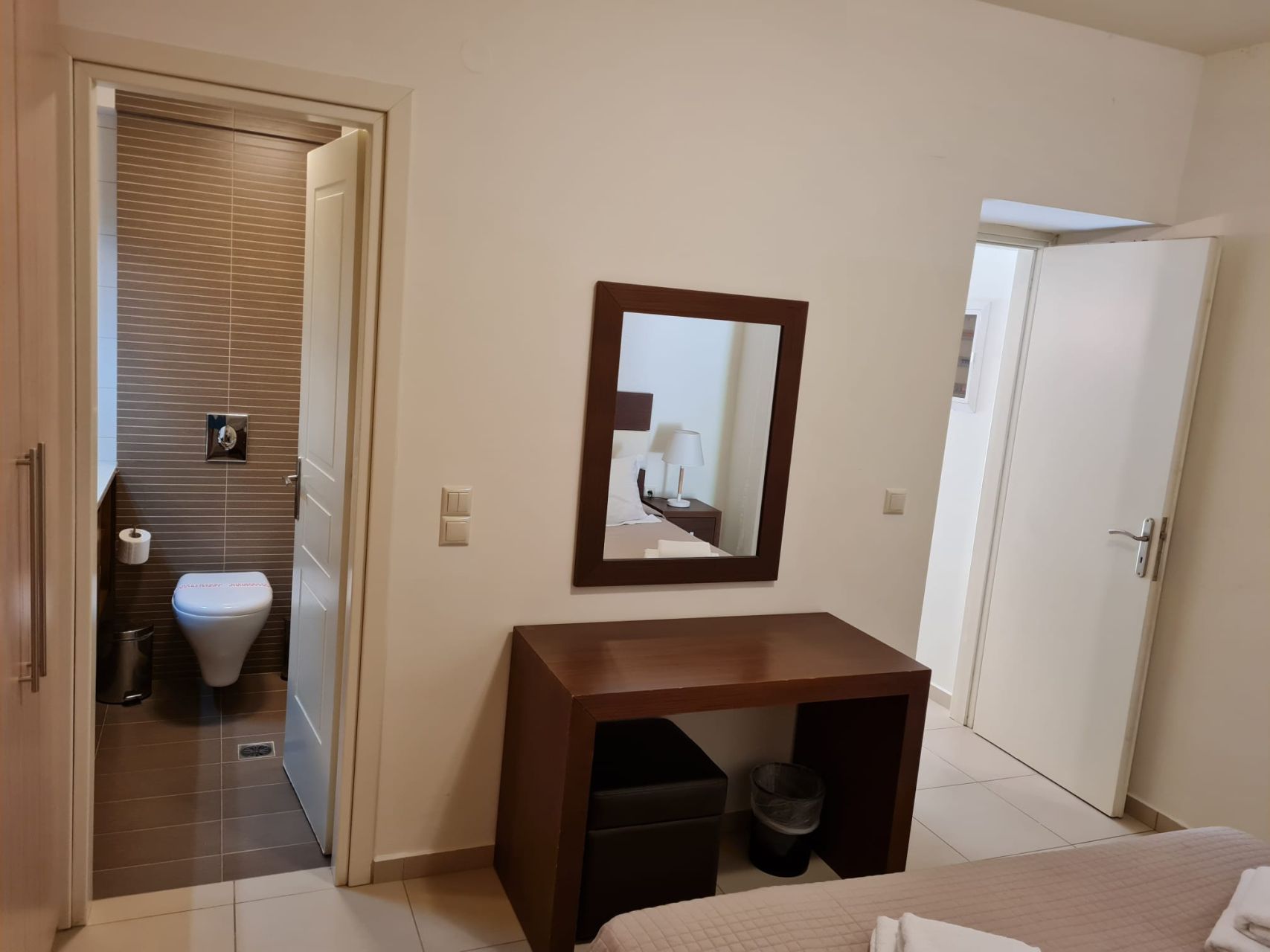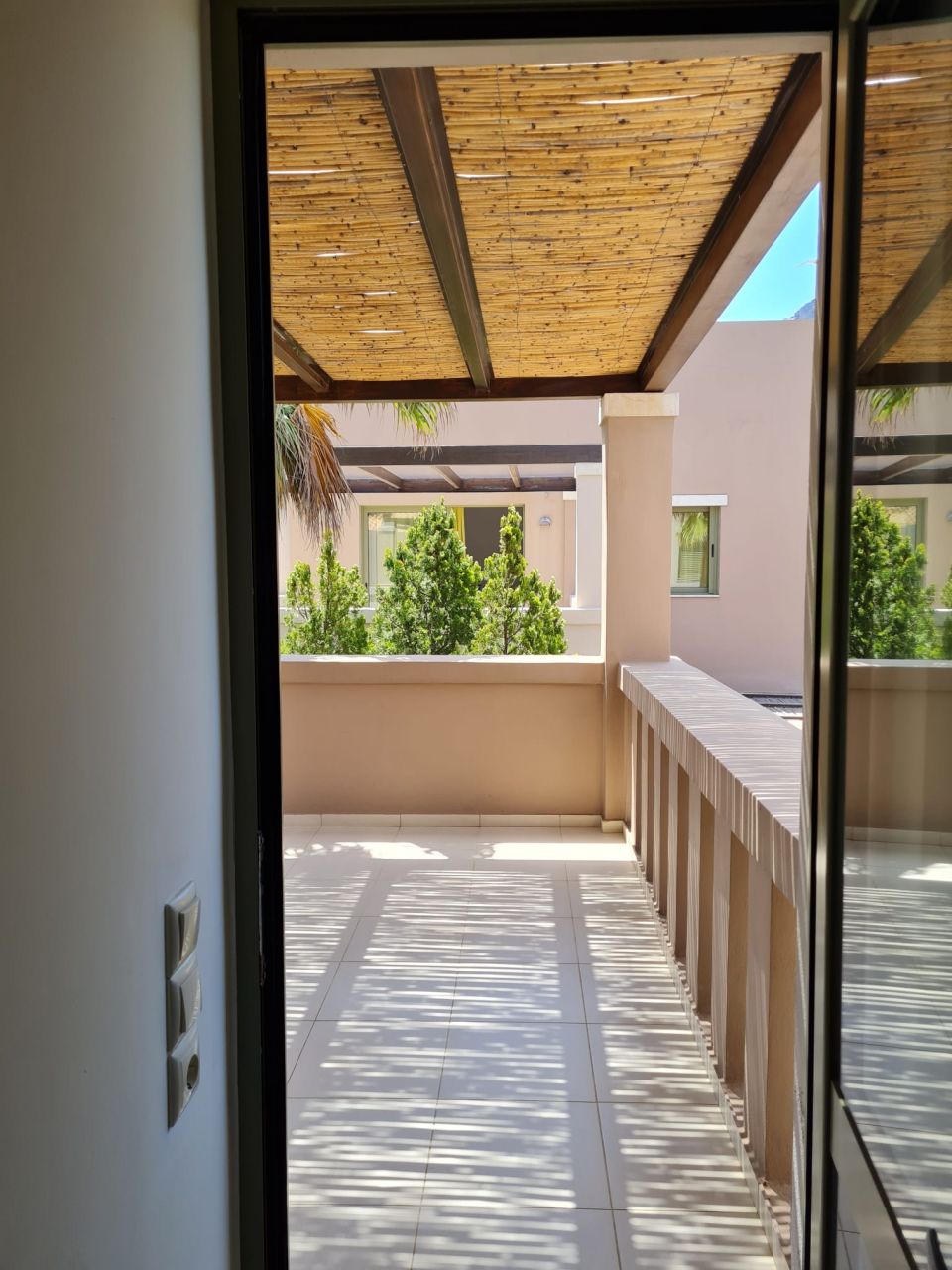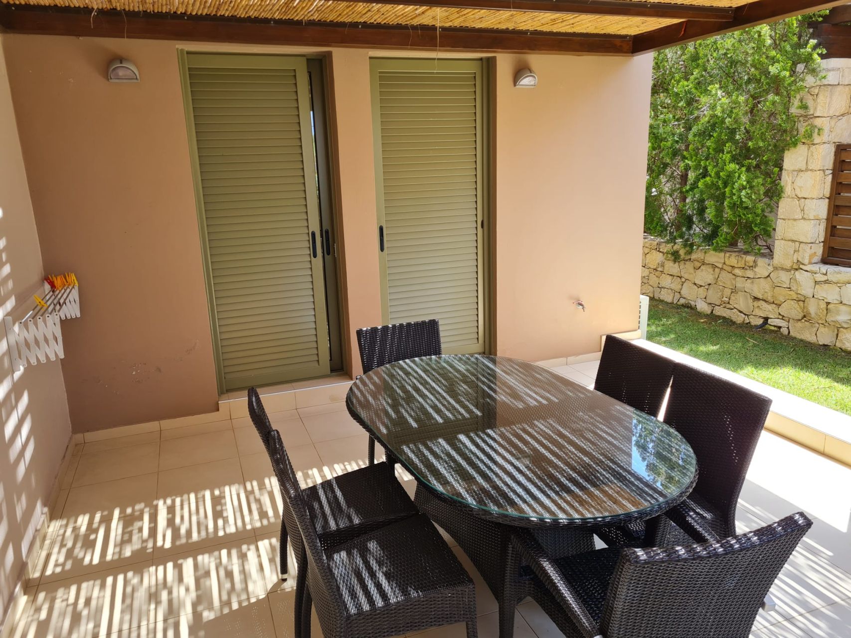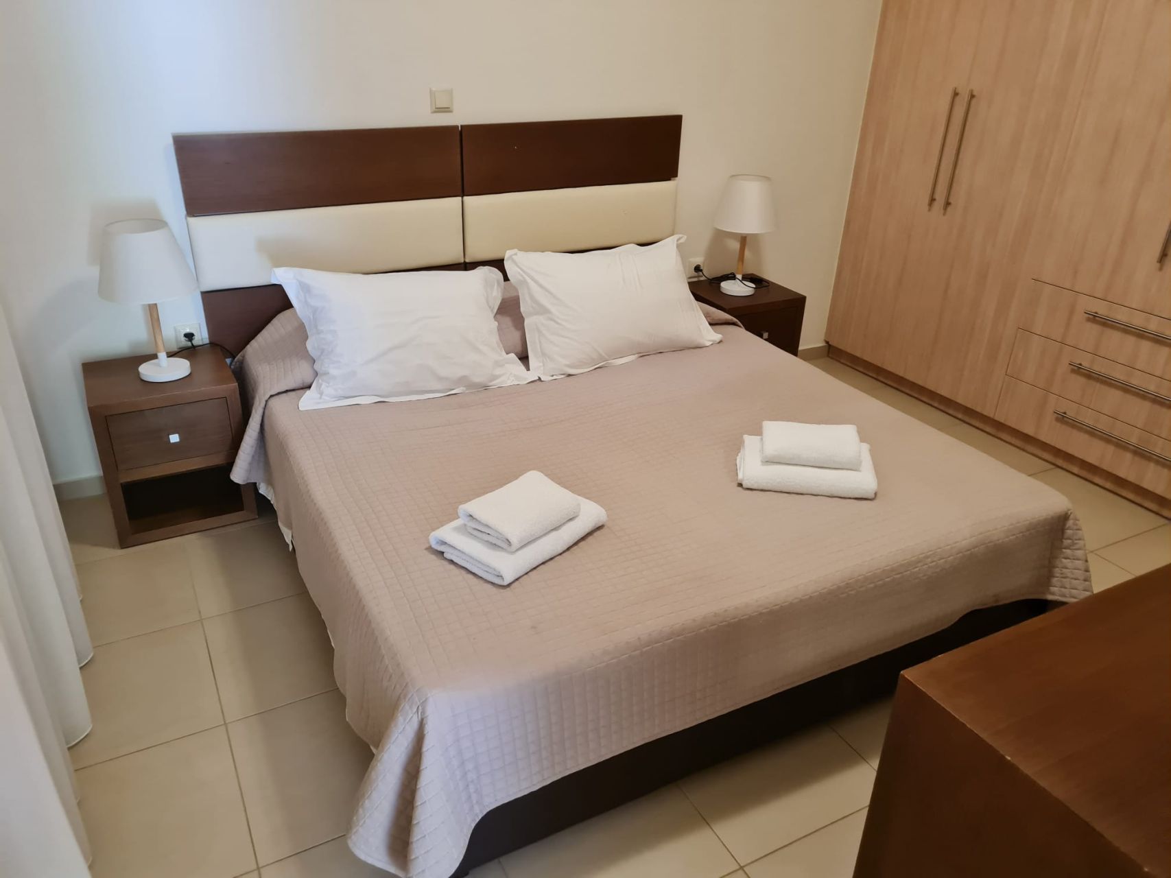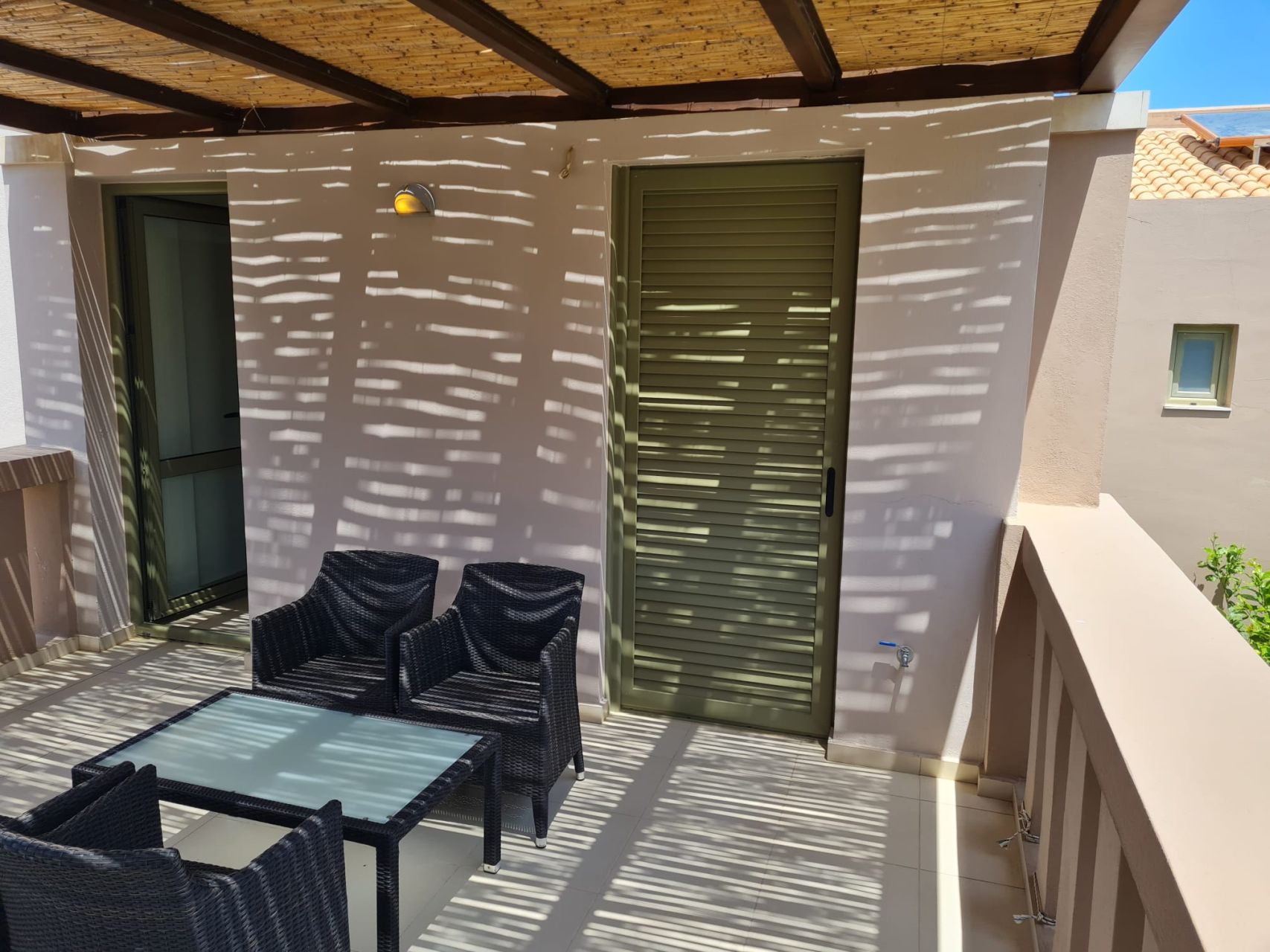 Όλα τα δωμάτια είναι φωτεινά, κλιματιζόμενα και διαθέτουν μεγάλη εντοιχισμένη ντουλάπα. Στον 1ο όροφο υπάρχει επίσης ένα μεγάλο μπαλκόνι, το οποίο προσφέρει πολύ ωραία θέα στον κήπο του συγκροτήματος καθώς και στη θάλασσα. Το διαμέρισμα διαθέτει δικό του χώρο στάθμευσης στο υπόγειο του συγκροτήματος.