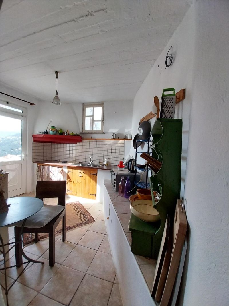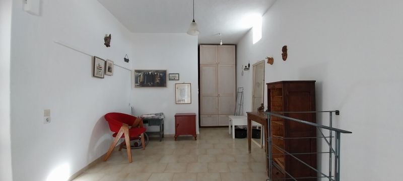Η είσοδος οδηγεί απευθείας στην κουζίνα, όπου χτιστά χωρίσματα διαμορφώνουν ανοιχτά ντουλάπια και πάγκους εργασίας, διατηρώντας το παραδοσιακό ύφος. Δίπλα σε μια εσοχή με καμάρα βρίσκεται ένας άνετος χώρος τραπεζαρίας/καθιστικού, δημιουργώντας μια ζεστή και φιλόξενη ατμόσφαιρα.