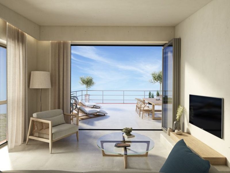 και εντυπωσιακή βεράντα 45,37 τ.μ., ιδανική για στιγμές χαλάρωσης, υπαίθρια γεύματα και απόλαυση του κλίματος της νότιας Κρήτης.