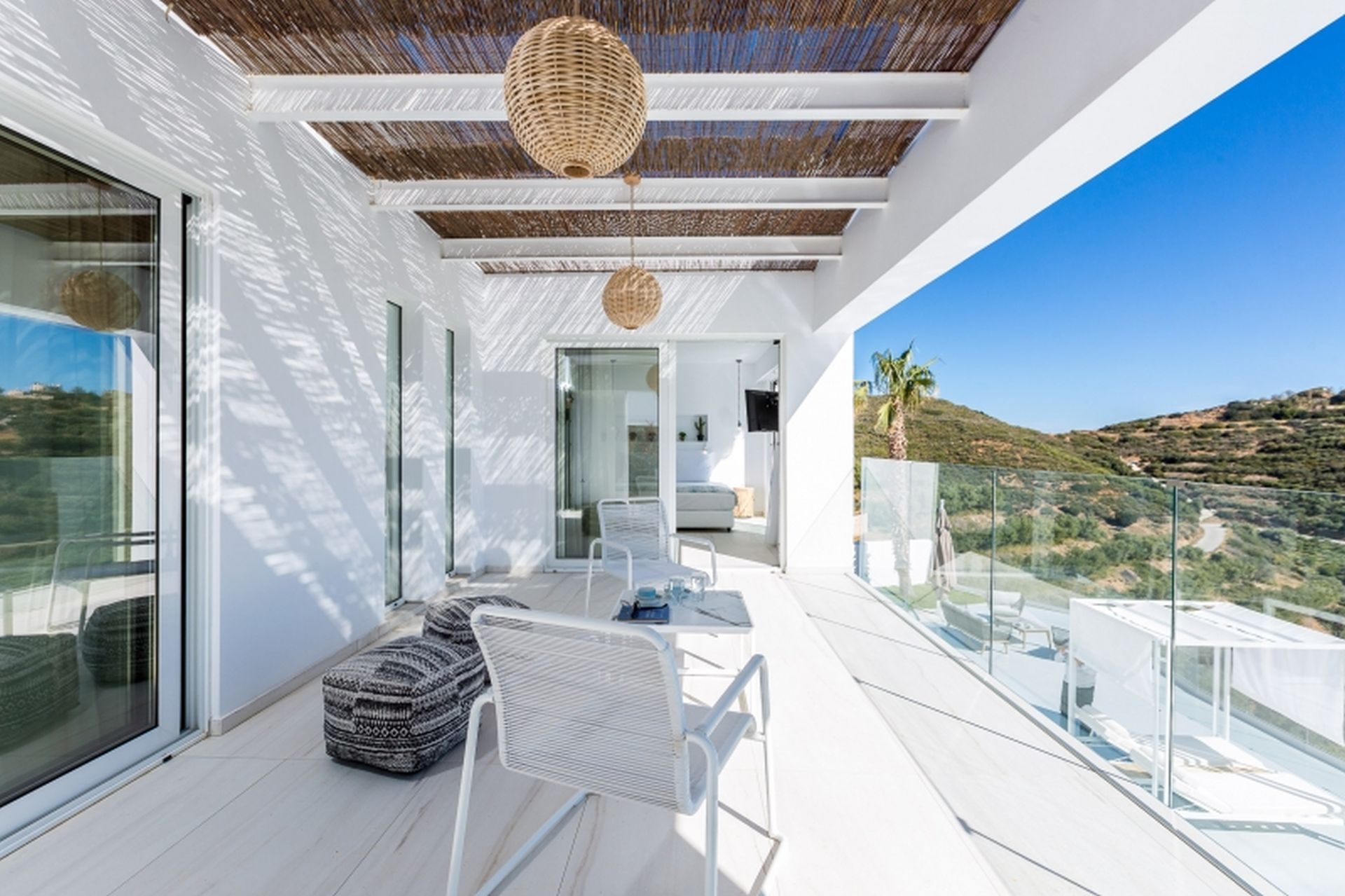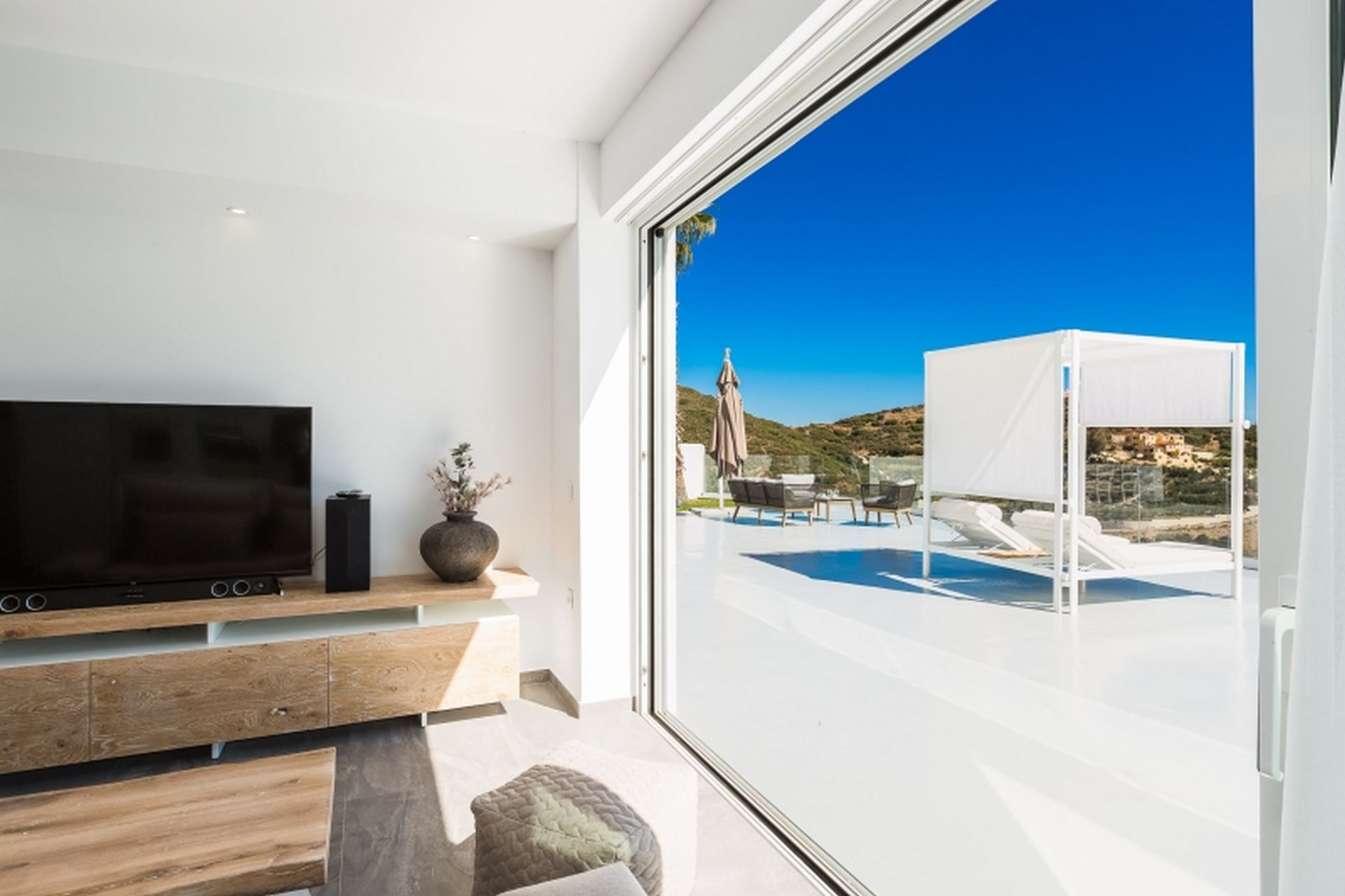 Στον εξωτερικό χώρο συναντάμε την πισίνα καθώς και το BBQ με μοναδική και ανεμπόδιστη θέα στον κόλπο.