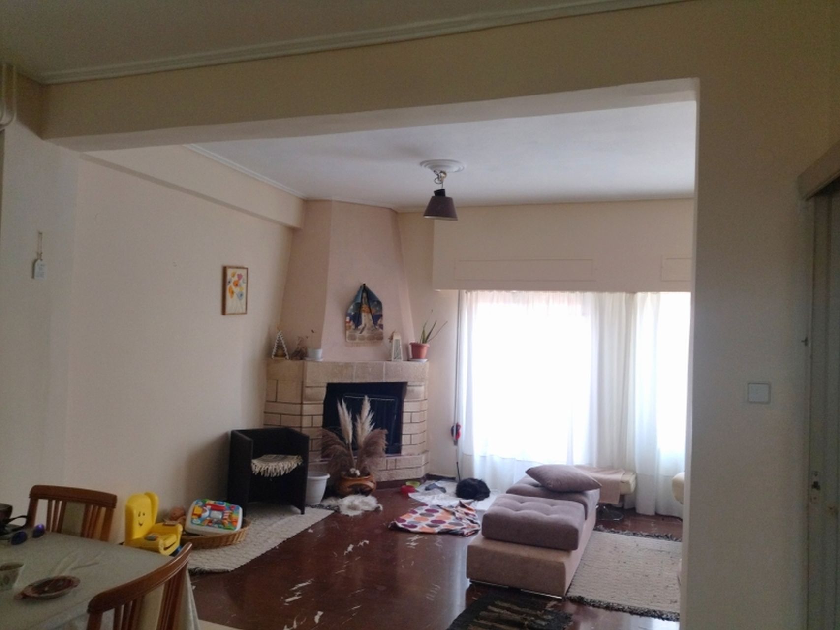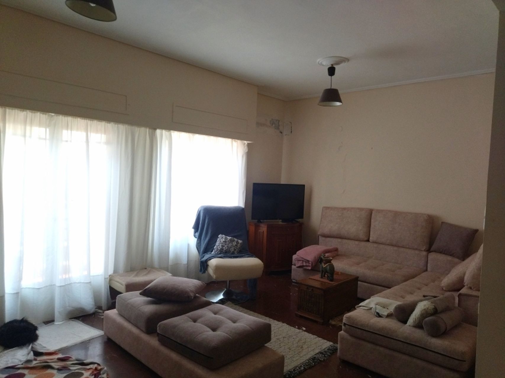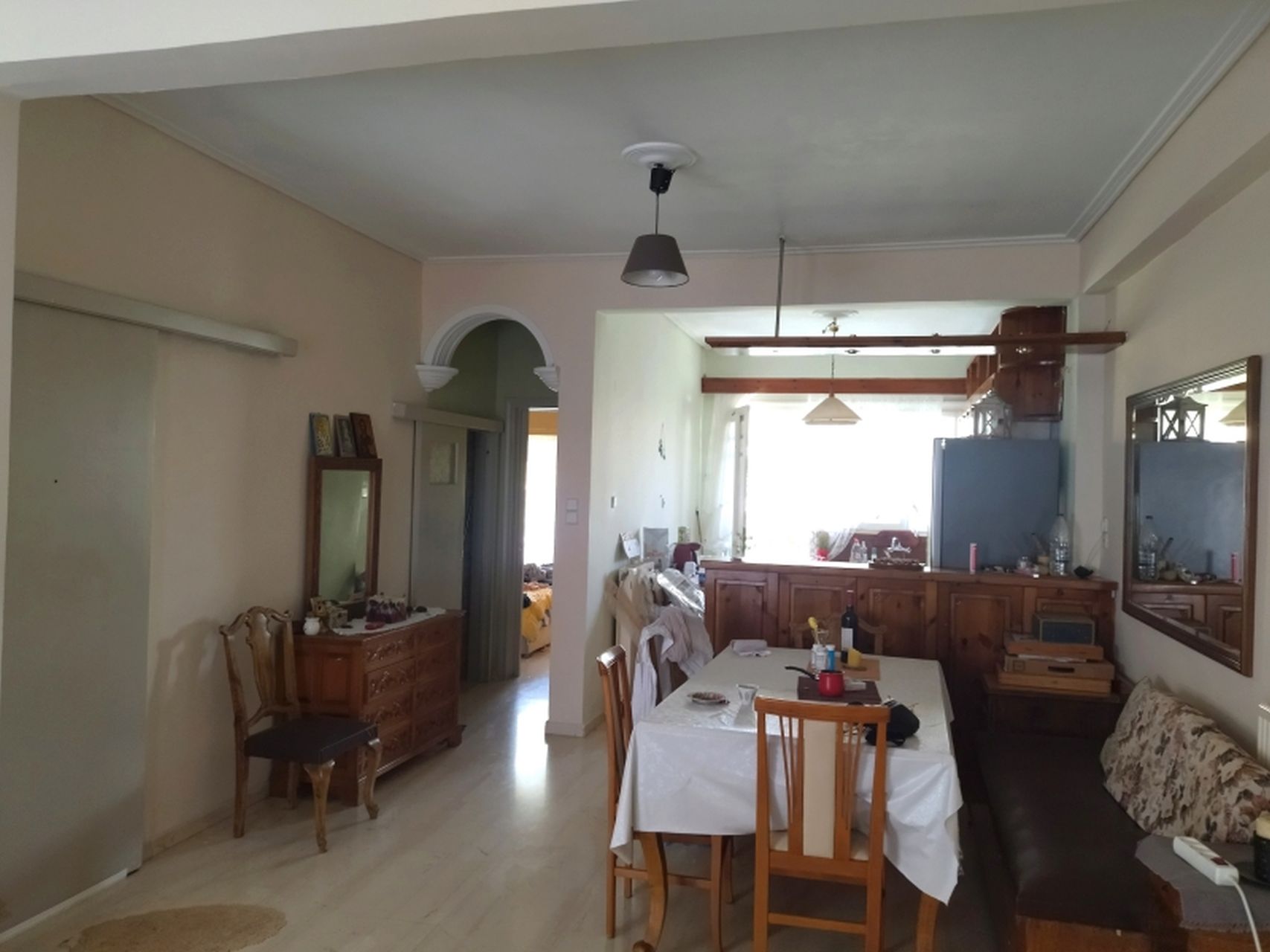 Πρόκειται για ένα διαμπερές διαμέρισμα πρώτου ορόφου που κατασκευάστηκε το 1978. Κατά την είσοδό μας σε αυτό, συναντάμε έναν μεγάλο φωτεινό ενιαίο χώρο σαλόνι/τραπεζαρία, που έχει πρόσβαση στο μπροστινό μπαλκόνι της οικίας. Ακολουθεί η κουζίνα, η οποία χωρίζεται με πάσο και ένα ευρύχωρο υπνοδωμάτιο που επικοινωνούν με ένα κοινό μπαλκόνι, καθώς επίσης και ένα λουτρό.