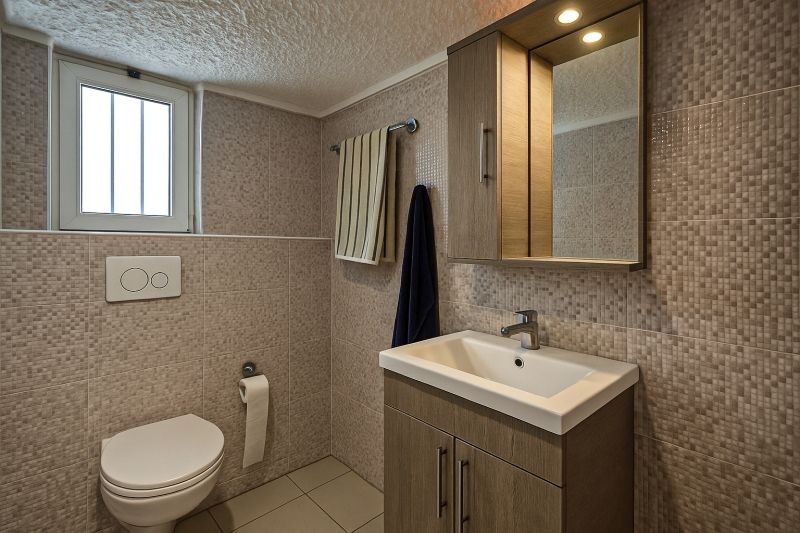 Η κουζίνα είναι εξοπλισμένη με σύγχρονα έπιπλα και ηλεκτρικές συσκευές, προσφέροντας άνετους πάγκους και επαρκής χώρους αποθήκευσης.