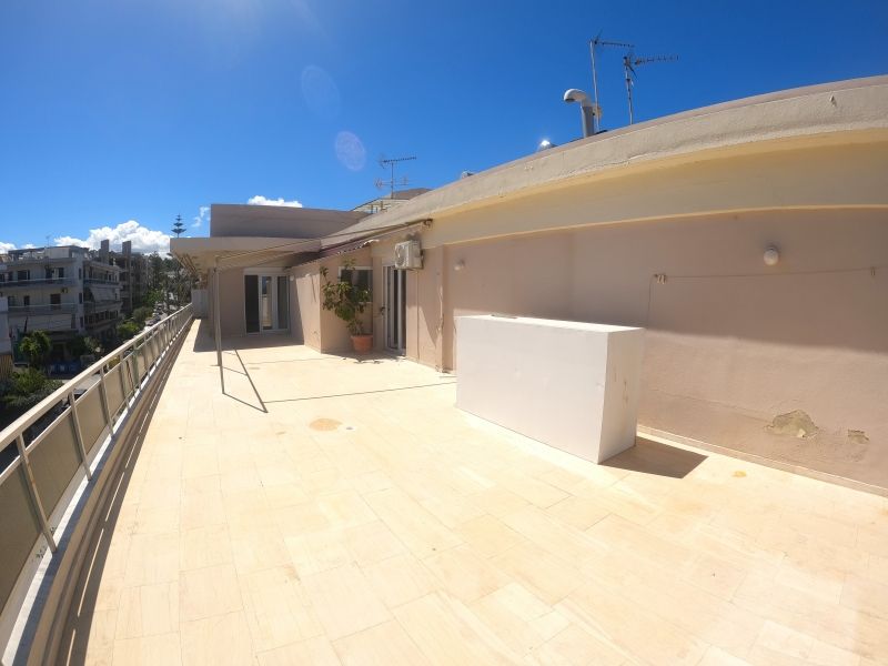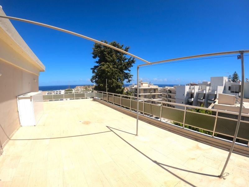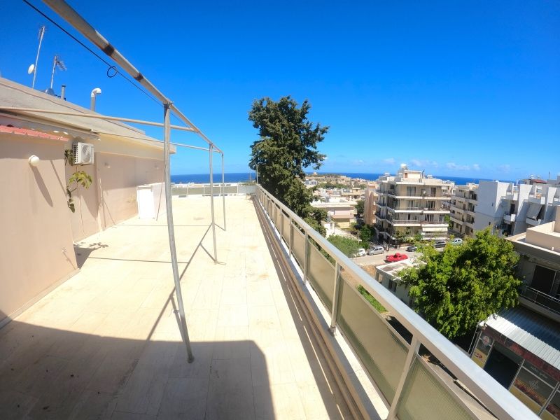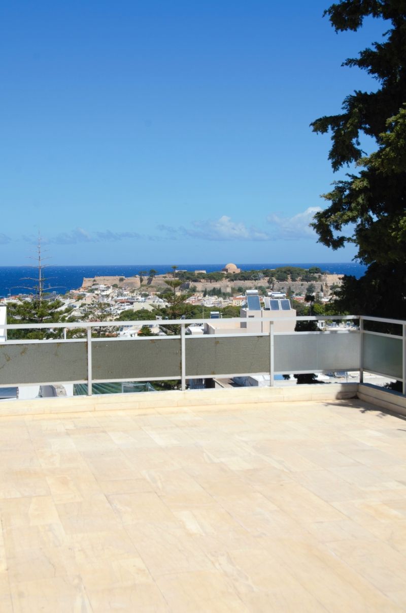 Ένα από τα πιο εντυπωσιακά χαρακτηριστικά του ακινήτου είναι η εξαιρετικά μεγάλη βεράντα, έκτασης άνω των 65 τ.μ., η οποία προσφέρει μοναδική θέα στη θάλασσα και την πόλη του Ρεθύμνου.