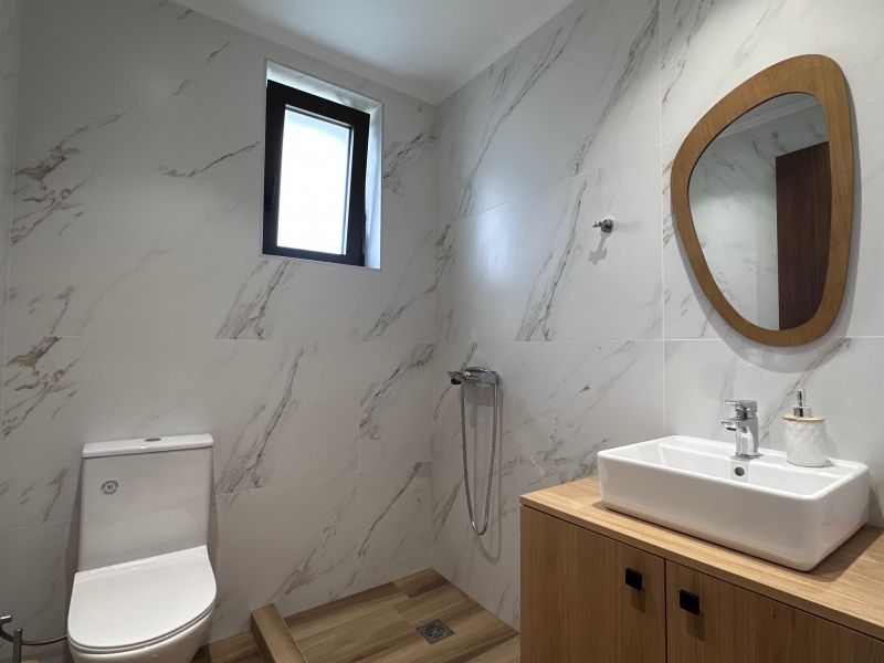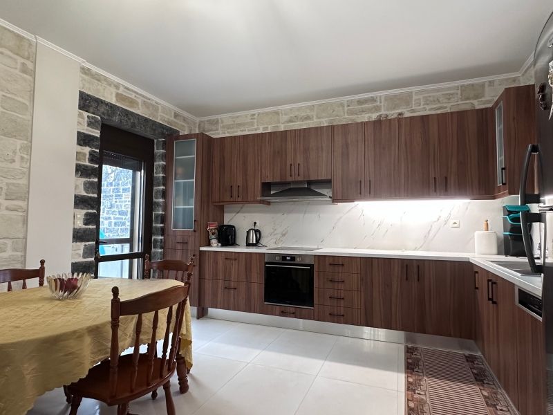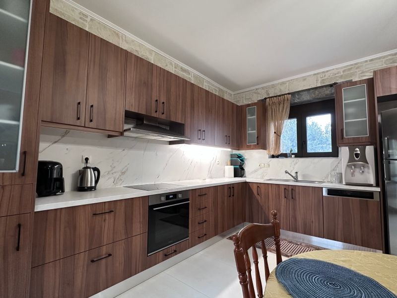 Στο εσωτερικό της κατοικίας, υπάρχει ο ενιαίος χώρος του σαλονιού και της τραπεζαρίας, προσφέροντας λειτουργικότητα και άνεση . Η κουζίνα είναι πλήρως εξοπλισμένη, με μεγάλες επιφάνειες εργασίας και αποθηκευτικούς χώρους, ιδανική για την καθημερινή χρήση.
