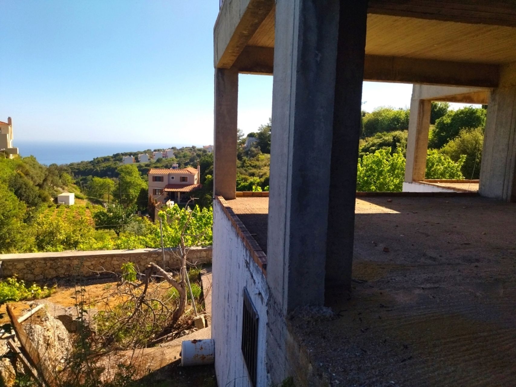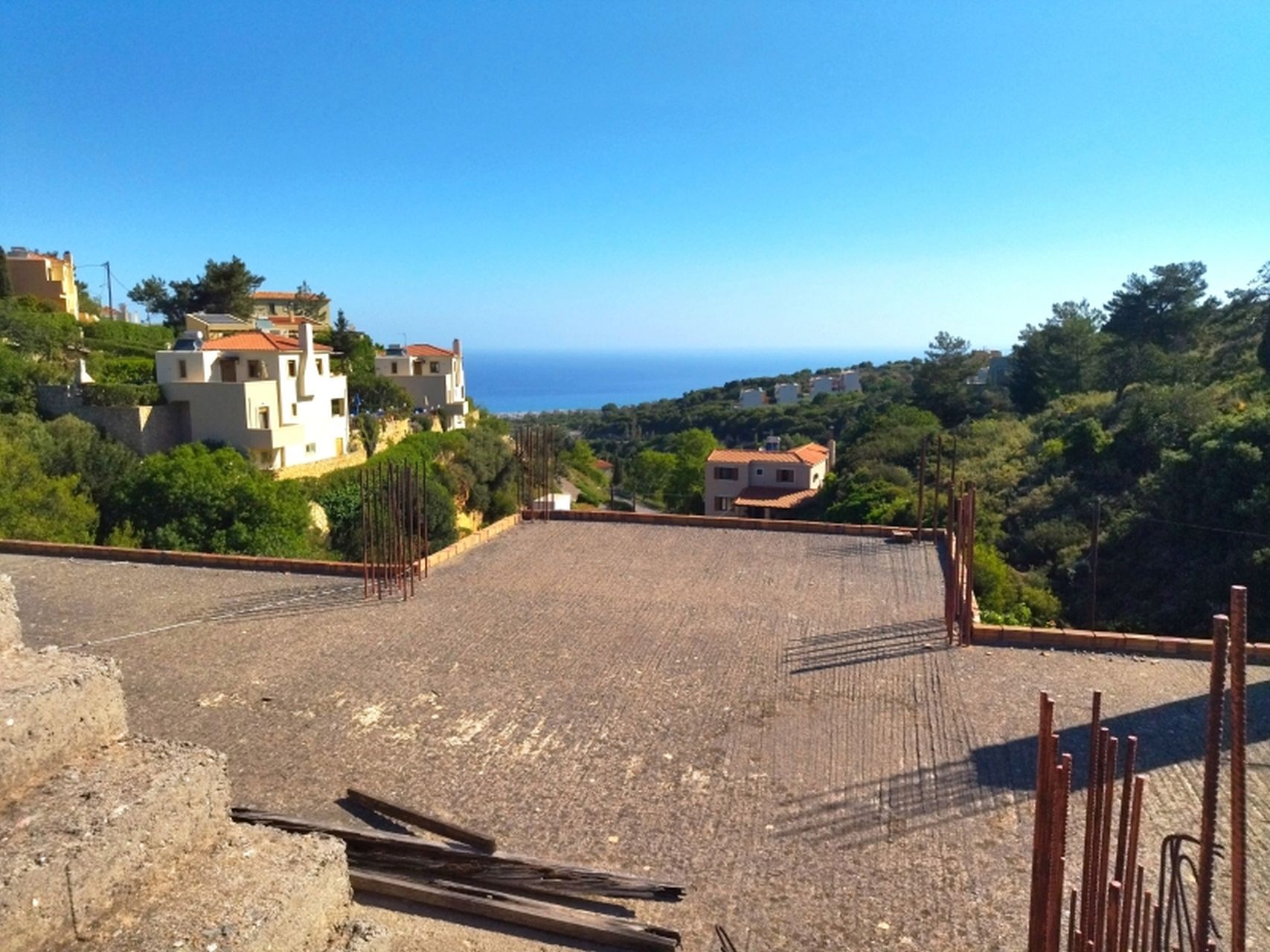 Άνωθεν του ισογείου έχει κατασκευαστεί ο πρώτος όροφος ο οποίος εκτείνεται σε τρία επίπεδα, με συνολική επιφάνεια 200 τμ. και είναι μη αποπερατωμένος καθώς έχει ολοκληρωθεί μόνον ο φέρρων οργανισμός (μπετά). Στο οικόπεδο έχουν φτιαχτεί λιθόκτιστα τοιχία τα οποία εκτός από απαραίτητα είναι και αισθητικά αφού διαμορφώνουν τον περιβάλλοντα χώρο σε πεζούλες, εξομαλύνοντας έτσι το απότομο ανάγλυφο του φυσικού εδάφους. Η θέση του ακινήτου είναι άκρως προνομιακή με απεριόριστη και ανεμπόδιστη θέα προς τη θάλασσα και δικαίως το Ρουσσοσπίτι αποκαλείται το «μπαλκόνι του Ρεθύμνου». Συνδυάζοντας λοιπόν την ηρεμία της εξοχής σε μικρή απόσταση από το κέντρο της πόλης, το συγκεκριμένο ακίνητο μπορεί να μετατραπεί σε δύο ανεξάρτητες κατοικίες με πισίνα και να αξιοποιηθεί είτε στον τουριστικό τομέα είτε ως ιδιοκατοίκηση.