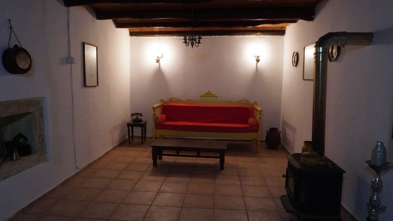 Η κύρια είσοδος οδηγεί στο ισόγειο, όπου βρίσκεται ο παραδοσιακός ξυλόφουρνος, ενώ υπάρχει και δεύτερη είσοδος στο επίπεδο του επάνω ορόφου, όπου υπάρχει και χώρος στάθμευσης. Από εκεί, λίγα σκαλοπάτια κατεβαίνουν στο ισόγειο, ενώ μια ξύλινη εσωτερική σκάλα ενώνει αρμονικά τους δύο ορόφους. Στο ισόγειο βρίσκονται το σαλόνι, ένα υπνοδωμάτιο και ένα γραφείο, ενώ ο επάνω όροφος περιλαμβάνει δύο υπνοδωμάτια, μπάνιο και κουζίνα με βεράντα που προσφέρει υπέροχη θέα και μια ατμόσφαιρα απόλυτης χαλάρωσης. Το ακίνητο διαθέτει επίσης υπαίθριους αποθηκευτικούς χώρους συνολικού εμβαδού 86 τ.μ. — ένα υπόστεγο 66 τ.μ. και μια αποθήκη 20 τ.μ., προσφέροντας άνεση και λειτουργικότητα για κάθε χρήση. Η τοποθεσία και η αρχιτεκτονική του συνδυάζουν παραδοσιακό χαρακτήρα, ιστορικό κύρος και φυσική ομορφιά, καθιστώντας το ακίνητο ιδανική επιλογή για μόνιμη κατοικία, εξοχικό ή τουριστική επένδυση.