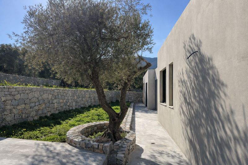 Η κατοικία έχει επιφάνεια 153 τ.μ. και βρίσκεται σε οικόπεδο 4.174 τ.μ. μέσα σε φυσικό τοπίο με ελαιώνες, προσφέροντας ιδιωτικότητα και ανοιχτή θέα στη φύση.