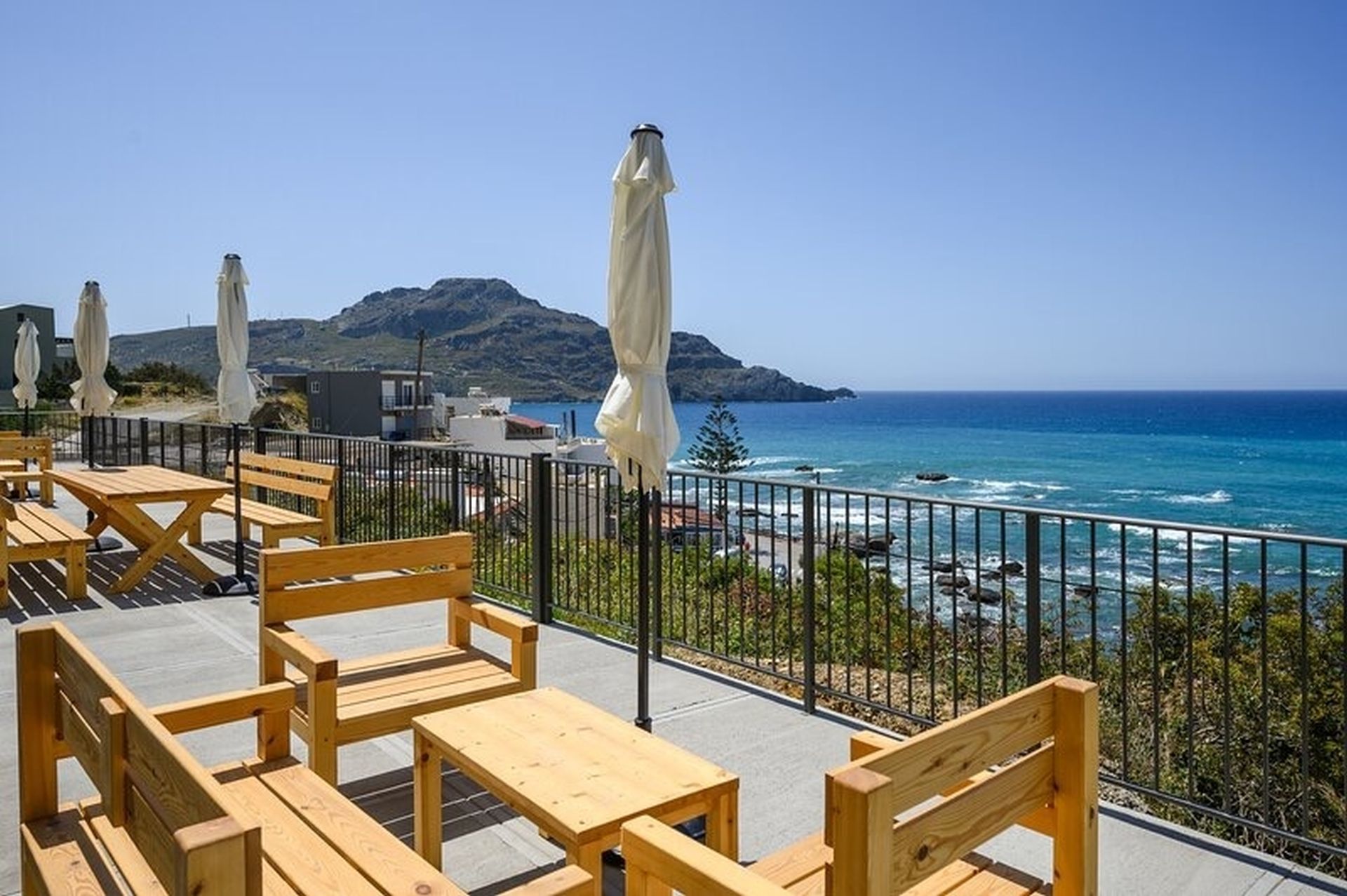 Ο περιφραγμένος χώρος προσφέρει ασφάλεια και ιδιωτικότητα, ενώ η εκπληκτική θέα στο κρητικό πέλαγος προσδίδει μια μοναδική αίσθηση χαλάρωσης.