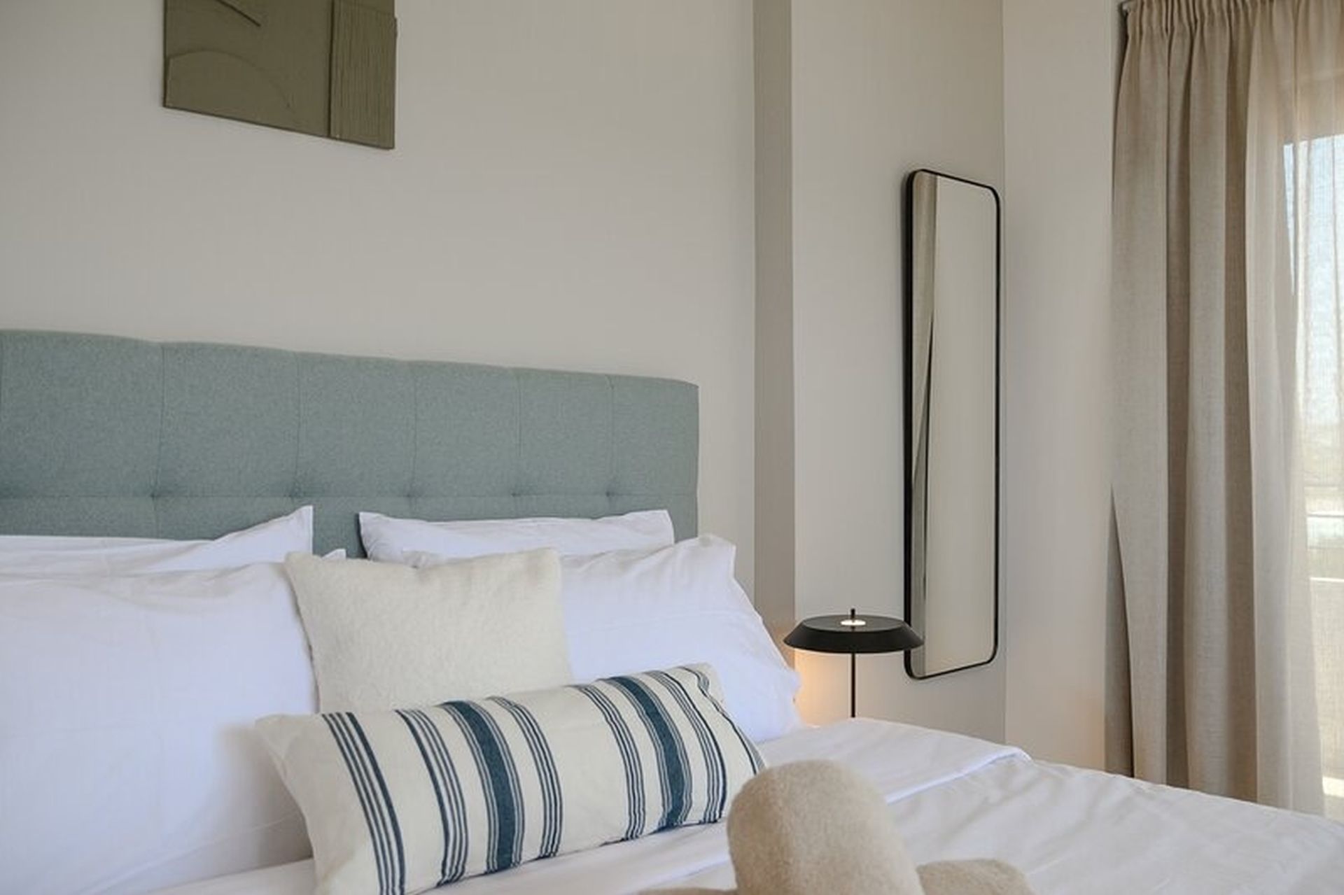Στον πρώτο όροφο, βρίσκονται 3 άνετα υπνοδωμάτια το καθένα με το δικό του μπάνιο, προσφέροντας απόλυτη άνεση και ιδιωτικότητα.