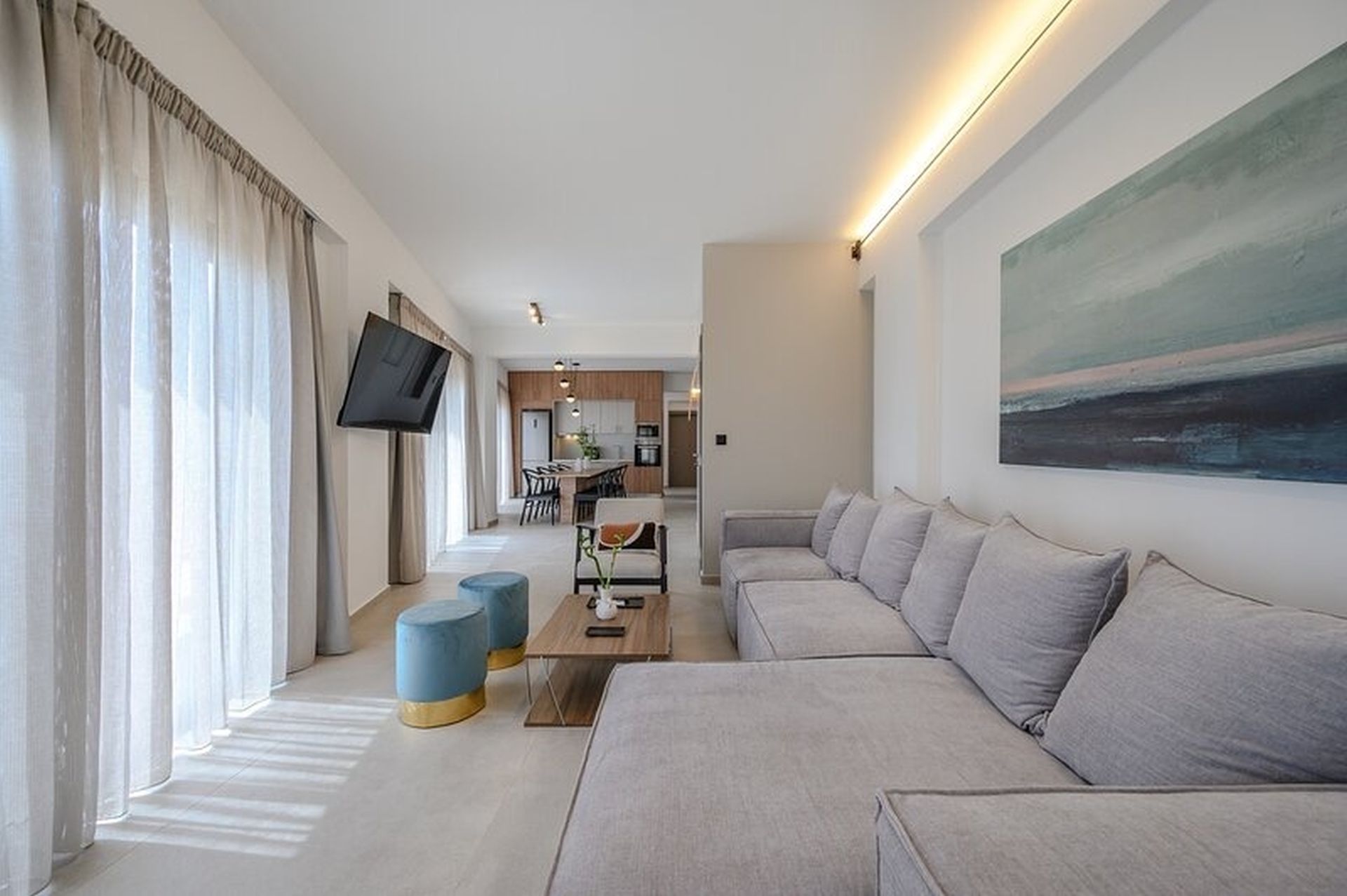 Η Βίλα είναι νεόδμητη, μοντέρνας αρχιτεκτονικής και σχεδιασμού και διαθέτει 2 επίπεδα.Στο ισόγειο οι χώροι είναι ανοιχτοί και φωτεινοί, περιλαμβάνοντας ένα ευρύχωρο σαλόνι, τραπεζαρία και πλήρως εξοπλισμένη κουζίνα, με πανοραμική θέα στη θάλασσα.