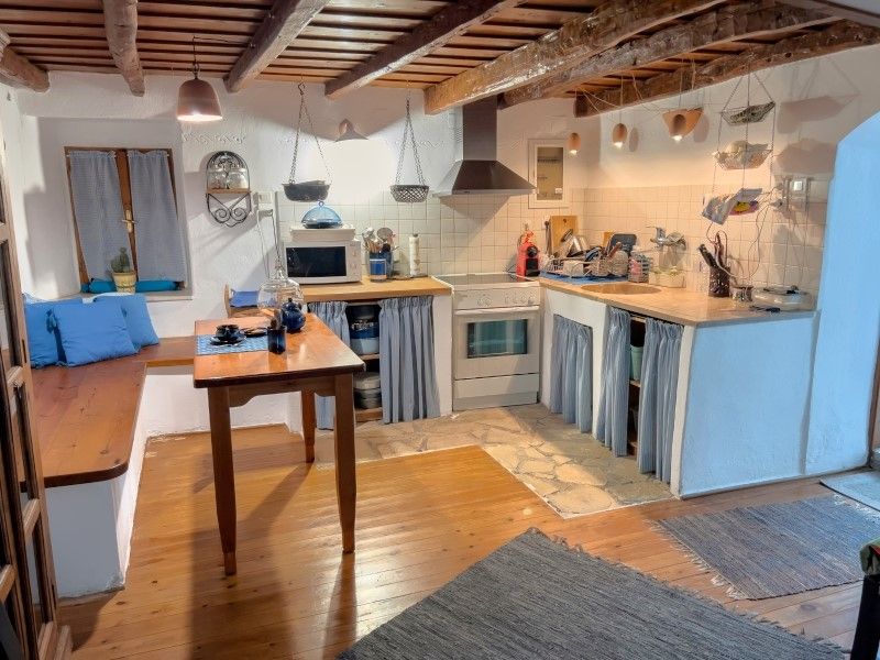 Σε αυτή την μεζονέτα τριών επιπέδων κυριαρχεί η πέτρα και το ξύλο, όπου σε συνδυασμό με την ολιγόλεπτη απόσταση προς τις παραλίες της περιοχής, τη κάνει ιδανική επιλογή για εξοχική ή μόνιμη κατοικία ή επένδυση.