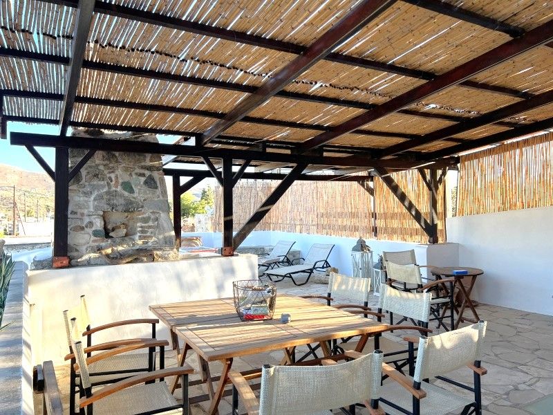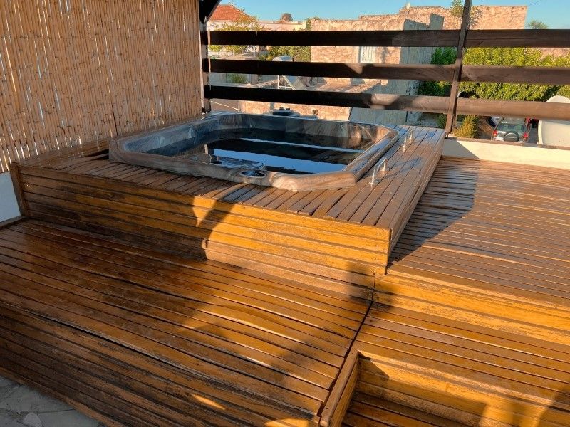 ταράτσα με το τζακούζι, τραπέζι και τη μοναδική θέα της περιοχής.