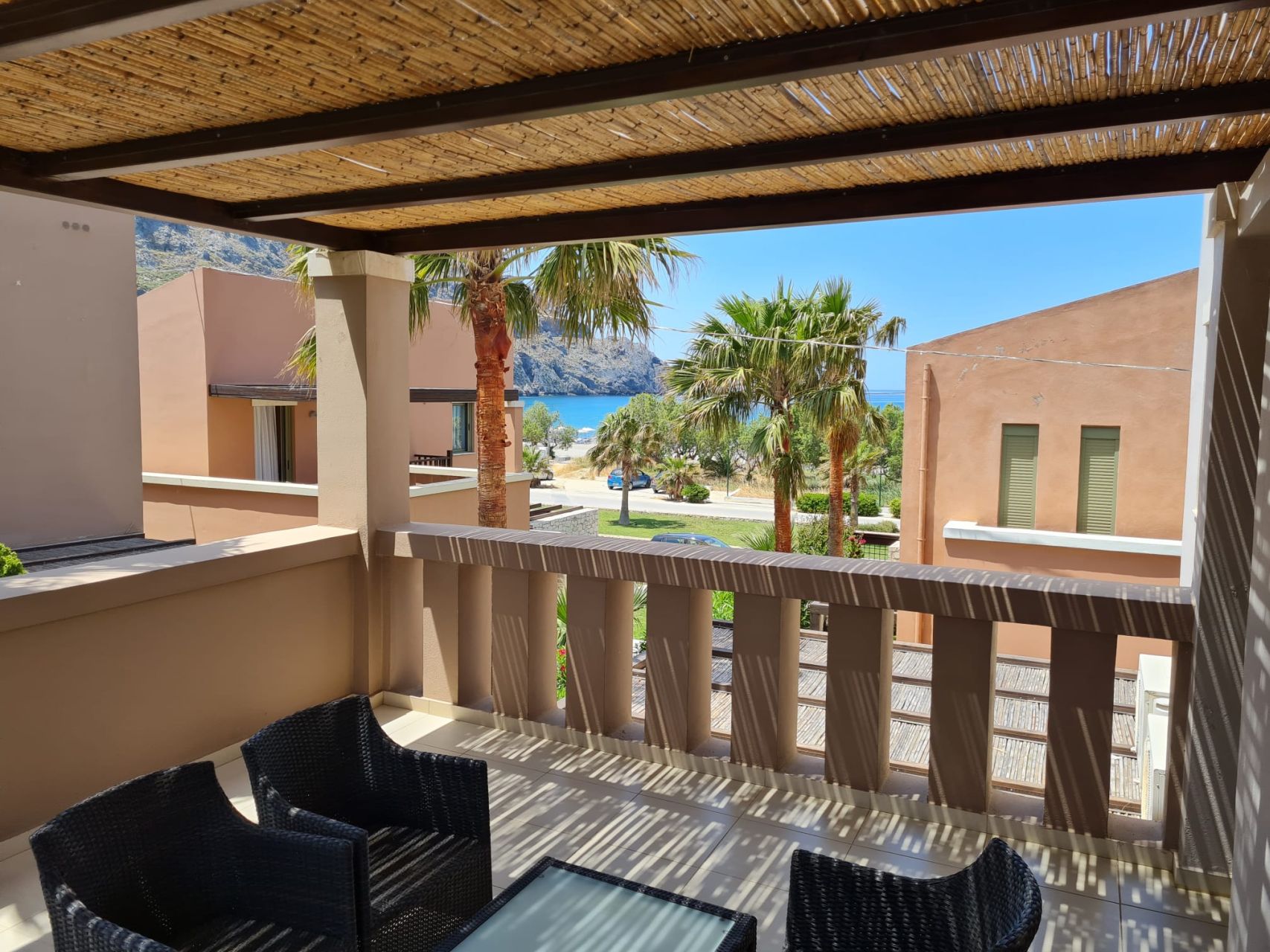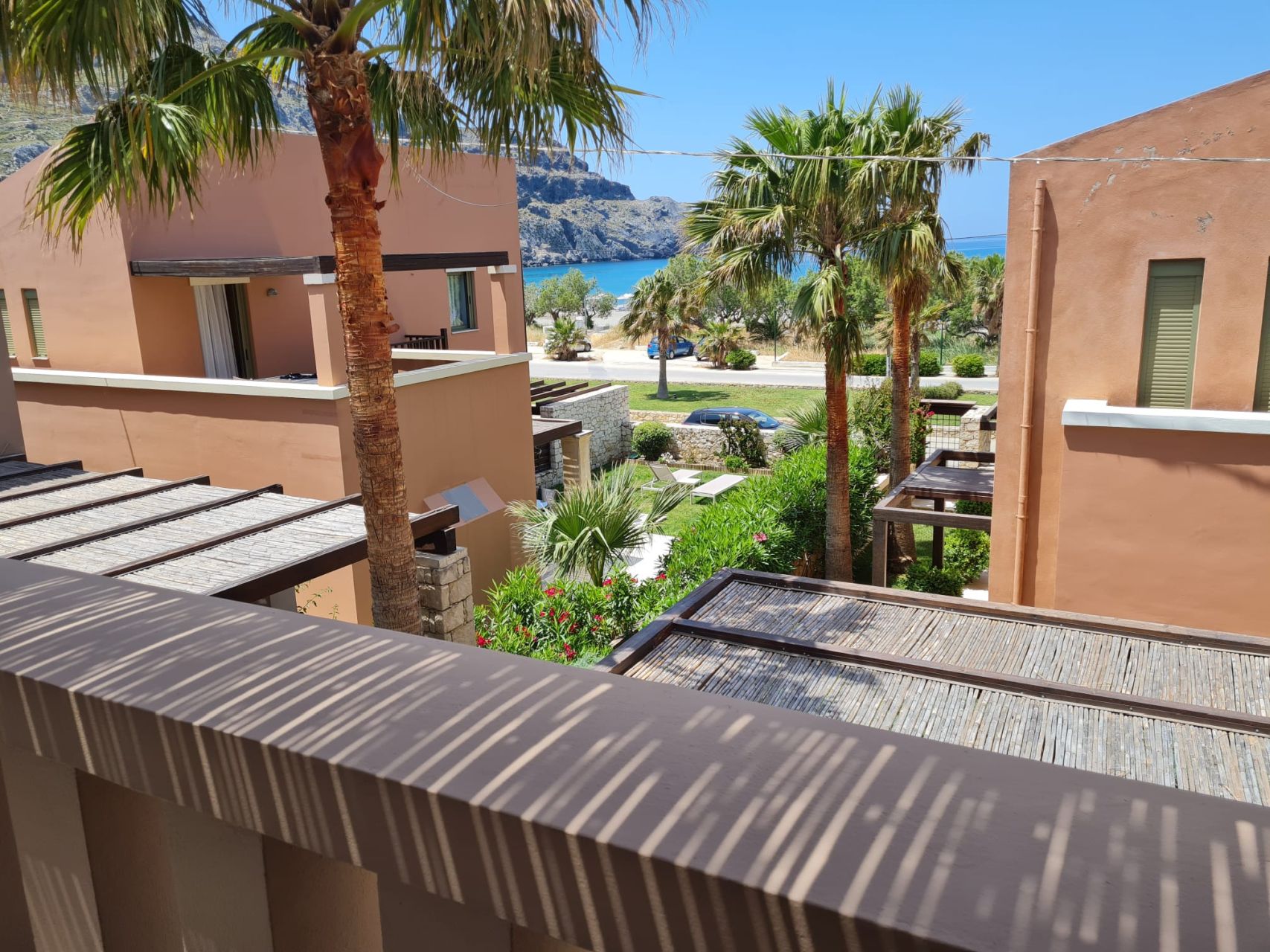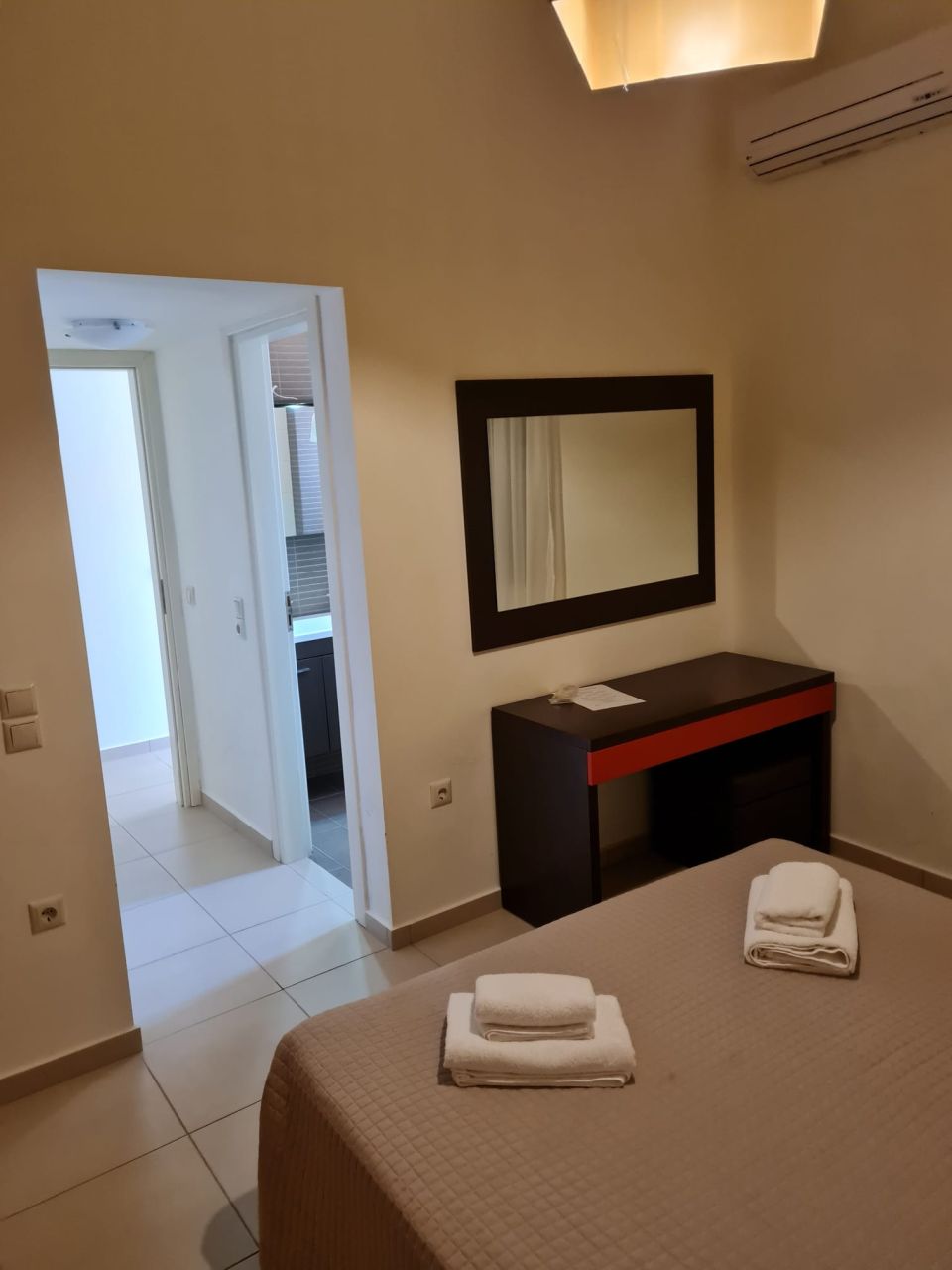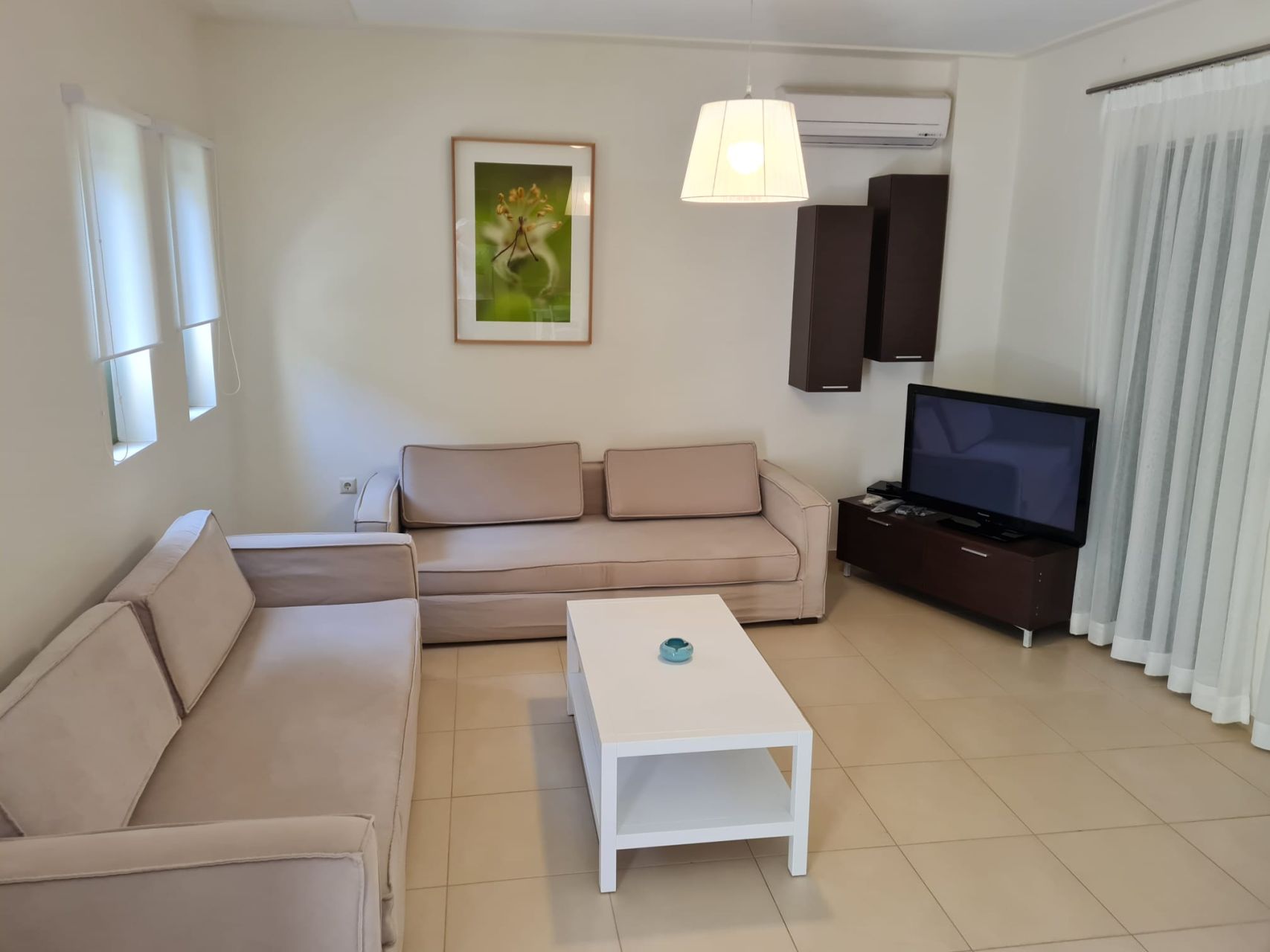 Όλα τα δωμάτια είναι φωτεινά, κλιματιζόμενα και διαθέτουν μεγάλη εντοιχισμένη ντουλάπα. Στον 1ο όροφο υπάρχει επίσης ένα μεγάλο μπαλκόνι, το οποίο προσφέρει πολύ ωραία θέα στον κήπο του συγκροτήματος καθώς και στη θάλασσα. Το διαμέρισμα διαθέτει δικό του χώρο στάθμευσης στο υπόγειο του συγκροτήματος.