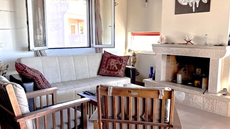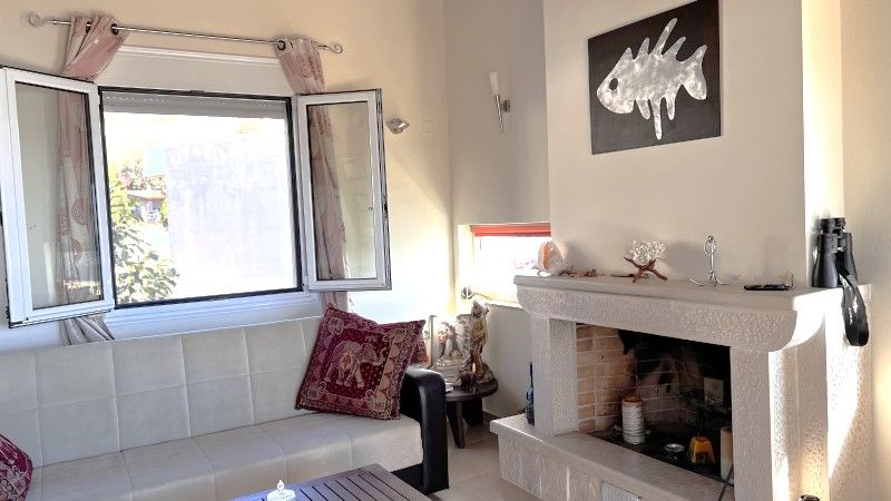 Διατίθενται προς πώληση δύο κατοικίες 5 βήματα από τη θάλασσα. Αποτελούνται από δύο ξεχωριστά ακίνητα με διαφορετικές εισόδους. Το κυρίως και μεγαλύτερο οροφοδιαμέρισμα 61,60 τ.μ. είναι πρώτου ορόφου και διαθέτει δύο υπνοδωμάτια, χώρο οντά ενιαίο με το καθιστικό, ένα μπάνιο και φωτεινό καθιστικό με χειροποίητο παραδοσιακό τζάκι. Η μπαλκονόπορτα στο σαλόνι είναι εξοπλισμένη με ηλεκτρικό ρολό. Ο οντάς ενώνεται άμεσα με το σαλόνι, δημιουργώντας μια ζεστή και άνετη ατμόσφαιρα, ειδικά όταν λειτουργεί το τζάκι.