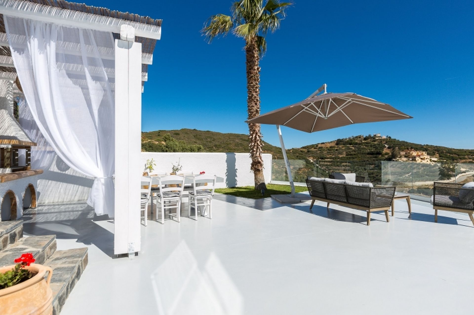 Στον εξωτερικό χώρο συναντάμε την πισίνα καθώς και το BBQ με μοναδική και ανεμπόδιστη θέα στον κόλπο.