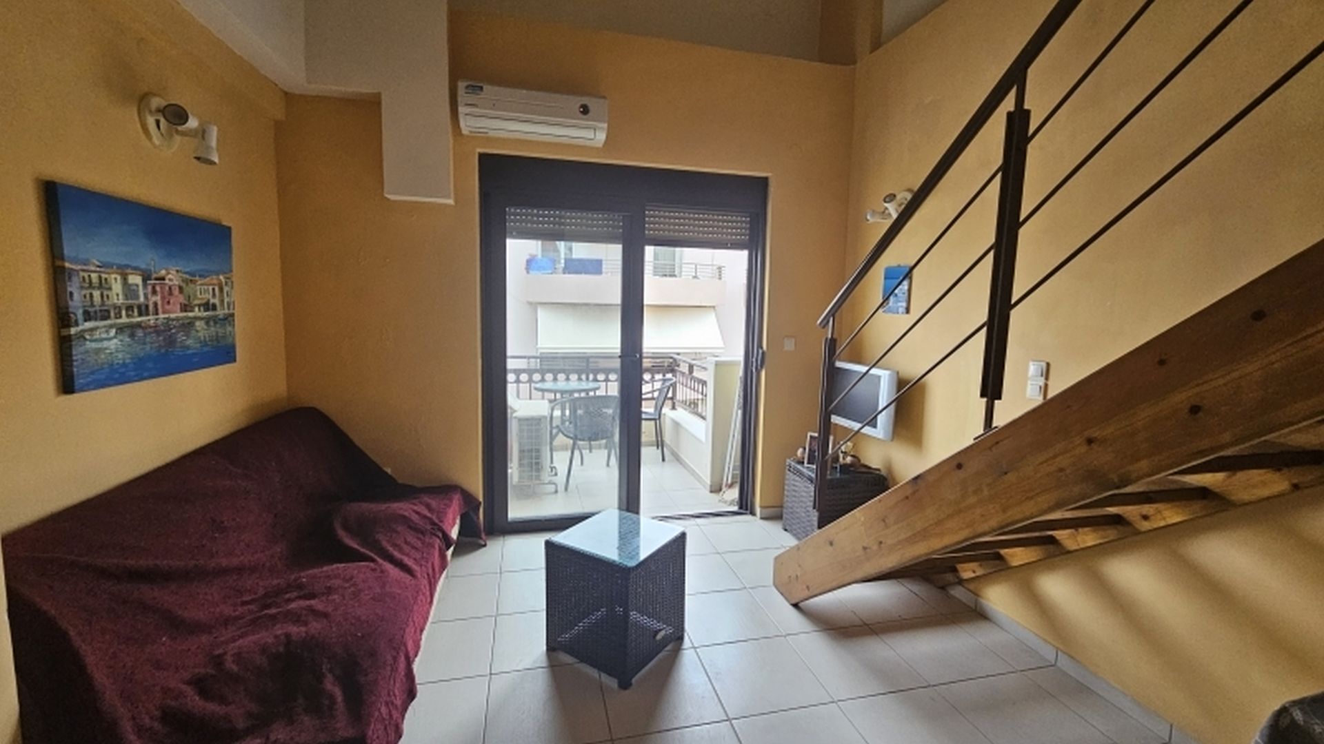 Κατά την είσοδο μας, στο ισόγειο συνολικής επιφάνειας 24,20τμ συναντάμε την κουζίνα, το καθιστικό με πρόσβαση στο μπαλκόνι και ένα w/c. Ανεβαίνοντας τις σκάλες , οδηγούμαστε στη σοφίτα των 21,80τμ, όπου βρίσκεται το υπνοδωμάτιο, το οποίο διαθέτει μεγάλη , ντουλαπα καθώς και το κυρίως μπάνιο . Παράλληλα, η σοφίτα έχει άμεση πρόσβαση στην βεράντα των 25 τμ, η οποία διαθέτει και πέργκολα, , και προσφέρει πανοραμική θέα θάλασσα.