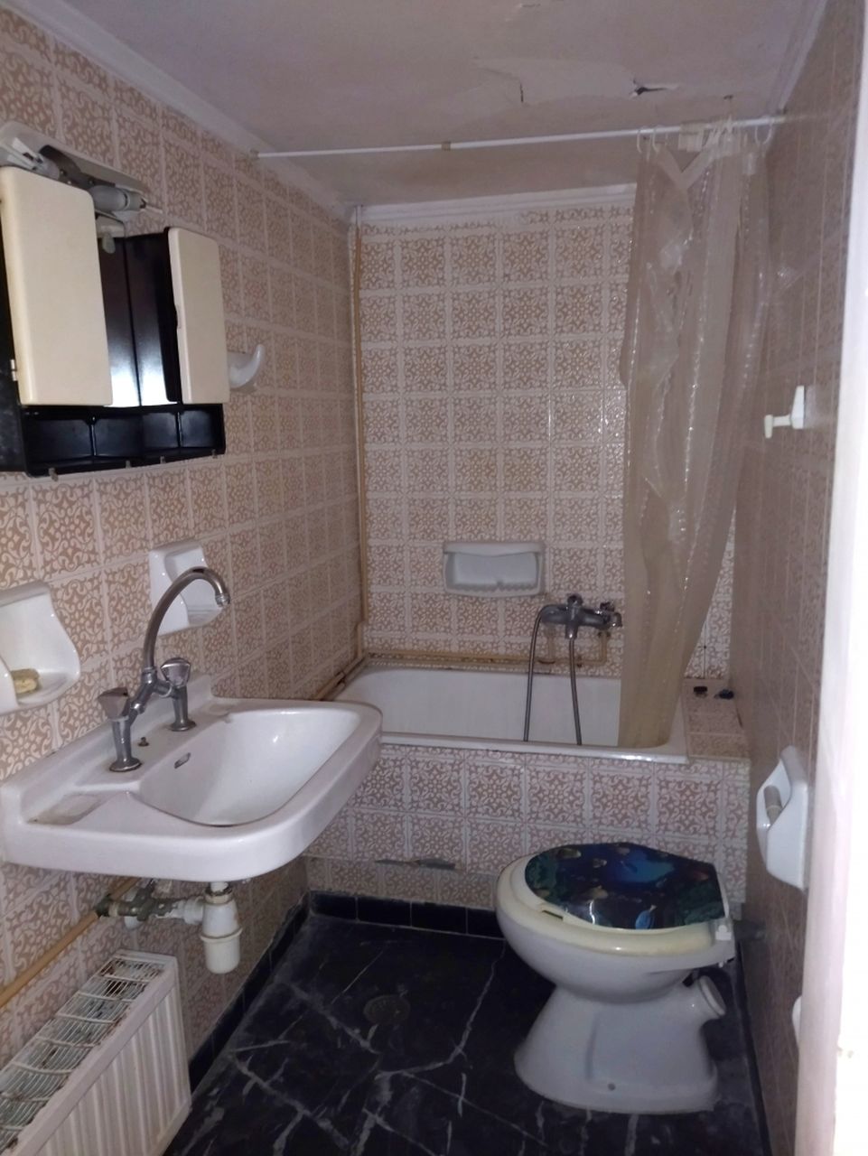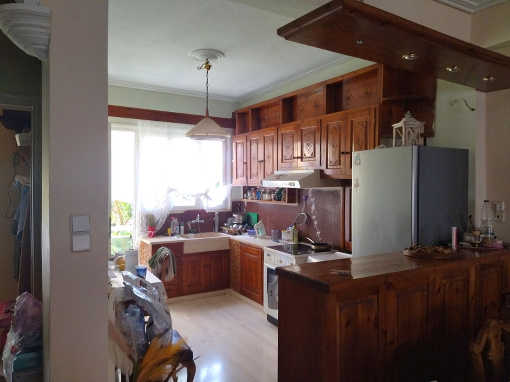 Πρόκειται για ένα διαμπερές διαμέρισμα πρώτου ορόφου που κατασκευάστηκε το 1978. Κατά την είσοδό μας σε αυτό, συναντάμε έναν μεγάλο φωτεινό ενιαίο χώρο σαλόνι/τραπεζαρία, που έχει πρόσβαση στο μπροστινό μπαλκόνι της οικίας. Ακολουθεί η κουζίνα, η οποία χωρίζεται με πάσο και ένα ευρύχωρο υπνοδωμάτιο που επικοινωνούν με ένα κοινό μπαλκόνι, καθώς επίσης και ένα λουτρό.