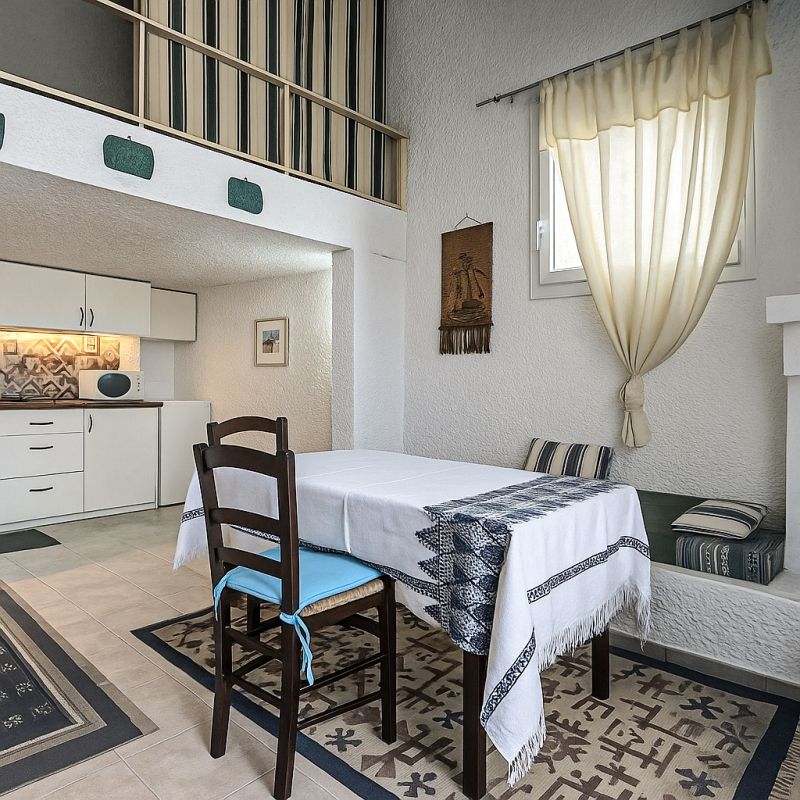 Το εσωτερικό του διαμερίσματος είναι λειτουργικά διαμορφωμένο, διαθέτοντας δύο χώρους υπνοδωματίων στο επάνω επίπεδο, ο ένας εκ των οποίων μπορεί να λειτουργήσει και ως καθιστικό, καθώς και έναν ενιαίο χώρο με τραπεζαρία και κουζίνα. Το μπάνιο έχει ανακαινιστεί πρόσφατα και περιλαμβάνει μπανιέρα, ενώ υπάρχει επιπλέον αποθηκευτικός χώρος για την κάλυψη καθημερινών αναγκών.