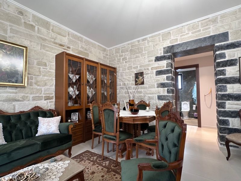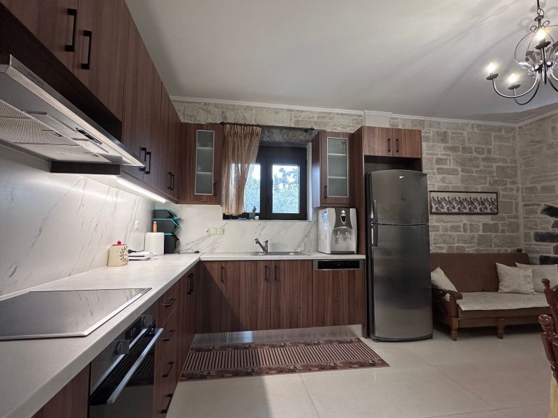 Στο εσωτερικό της κατοικίας, υπάρχει ο ενιαίος χώρος του σαλονιού και της τραπεζαρίας, προσφέροντας λειτουργικότητα και άνεση . Η κουζίνα είναι πλήρως εξοπλισμένη, με μεγάλες επιφάνειες εργασίας και αποθηκευτικούς χώρους, ιδανική για την καθημερινή χρήση.
