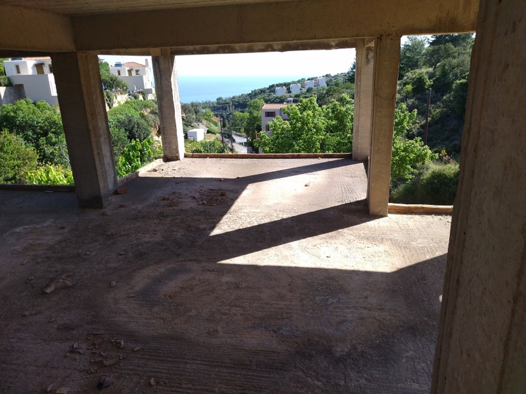 Άνωθεν του ισογείου έχει κατασκευαστεί ο πρώτος όροφος ο οποίος εκτείνεται σε τρία επίπεδα, με συνολική επιφάνεια 200 τμ. και είναι μη αποπερατωμένος καθώς έχει ολοκληρωθεί μόνον ο φέρρων οργανισμός (μπετά). Στο οικόπεδο έχουν φτιαχτεί λιθόκτιστα τοιχία τα οποία εκτός από απαραίτητα είναι και αισθητικά αφού διαμορφώνουν τον περιβάλλοντα χώρο σε πεζούλες, εξομαλύνοντας έτσι το απότομο ανάγλυφο του φυσικού εδάφους. Η θέση του ακινήτου είναι άκρως προνομιακή με απεριόριστη και ανεμπόδιστη θέα προς τη θάλασσα και δικαίως το Ρουσσοσπίτι αποκαλείται το «μπαλκόνι του Ρεθύμνου». Συνδυάζοντας λοιπόν την ηρεμία της εξοχής σε μικρή απόσταση από το κέντρο της πόλης, το συγκεκριμένο ακίνητο μπορεί να μετατραπεί σε δύο ανεξάρτητες κατοικίες με πισίνα και να αξιοποιηθεί είτε στον τουριστικό τομέα είτε ως ιδιοκατοίκηση.