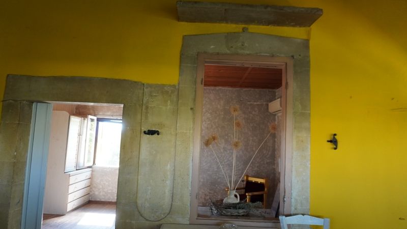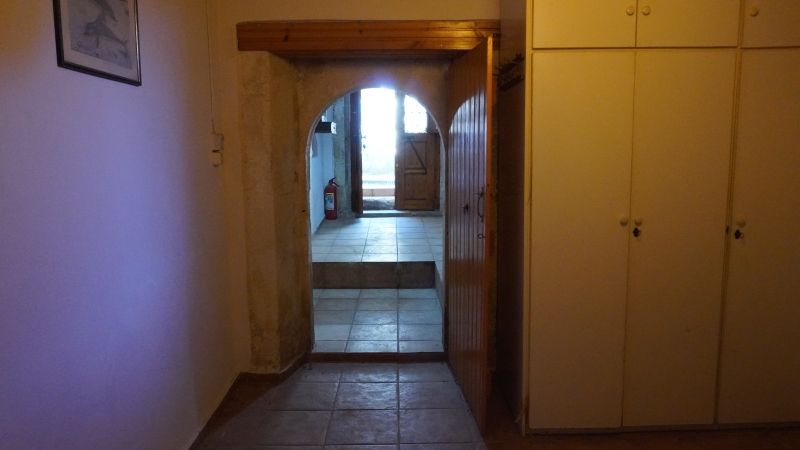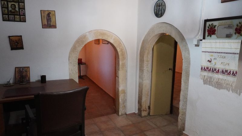 Η κύρια είσοδος οδηγεί στο ισόγειο, όπου βρίσκεται ο παραδοσιακός ξυλόφουρνος, ενώ υπάρχει και δεύτερη είσοδος στο επίπεδο του επάνω ορόφου, όπου υπάρχει και χώρος στάθμευσης. Από εκεί, λίγα σκαλοπάτια κατεβαίνουν στο ισόγειο, ενώ μια ξύλινη εσωτερική σκάλα ενώνει αρμονικά τους δύο ορόφους. Στο ισόγειο βρίσκονται το σαλόνι, ένα υπνοδωμάτιο και ένα γραφείο, ενώ ο επάνω όροφος περιλαμβάνει δύο υπνοδωμάτια, μπάνιο και κουζίνα με βεράντα που προσφέρει υπέροχη θέα και μια ατμόσφαιρα απόλυτης χαλάρωσης. Το ακίνητο διαθέτει επίσης υπαίθριους αποθηκευτικούς χώρους συνολικού εμβαδού 86 τ.μ. — ένα υπόστεγο 66 τ.μ. και μια αποθήκη 20 τ.μ., προσφέροντας άνεση και λειτουργικότητα για κάθε χρήση. Η τοποθεσία και η αρχιτεκτονική του συνδυάζουν παραδοσιακό χαρακτήρα, ιστορικό κύρος και φυσική ομορφιά, καθιστώντας το ακίνητο ιδανική επιλογή για μόνιμη κατοικία, εξοχικό ή τουριστική επένδυση.