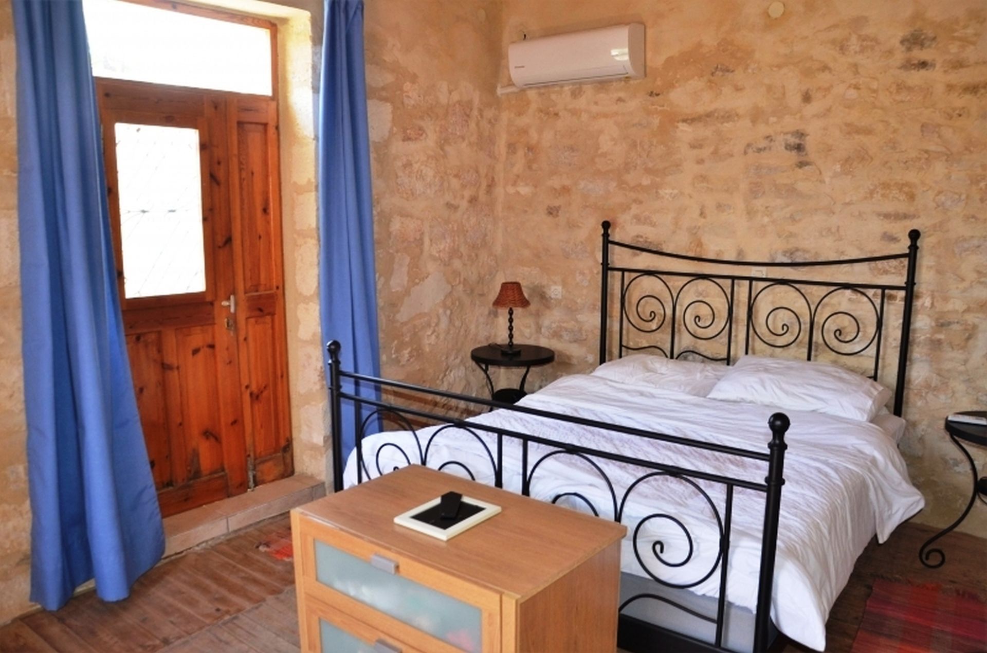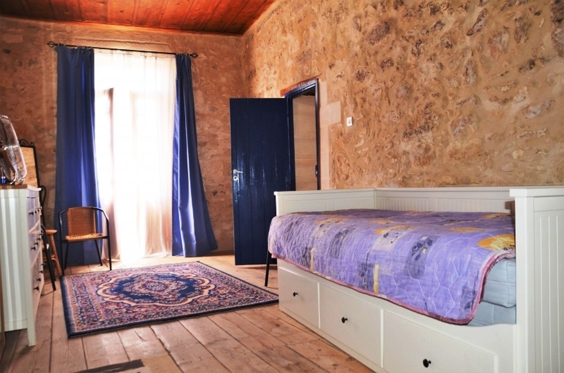 Ανεβαίνοντας στον πρώτο όροφο, συναντάμε έναν ενιαίο χώρο, όπου υπάρχει το σαλόνι και η τραπεζαρία με ένα όμορφο και μεγάλο τζάκι. Στη συνέχεια προχωρώντας προς το εσωτερικό της οικίας βρίσκονται τα δύο υπνοδωμάτια, το ένα εκ των οποίων διαθέτει μπαλκόνι το οποίο βλέπει στον κεντρικό δρόμο του χωριού ενώ το δεύτερο έχει πρόσβαση σε βεράντα.