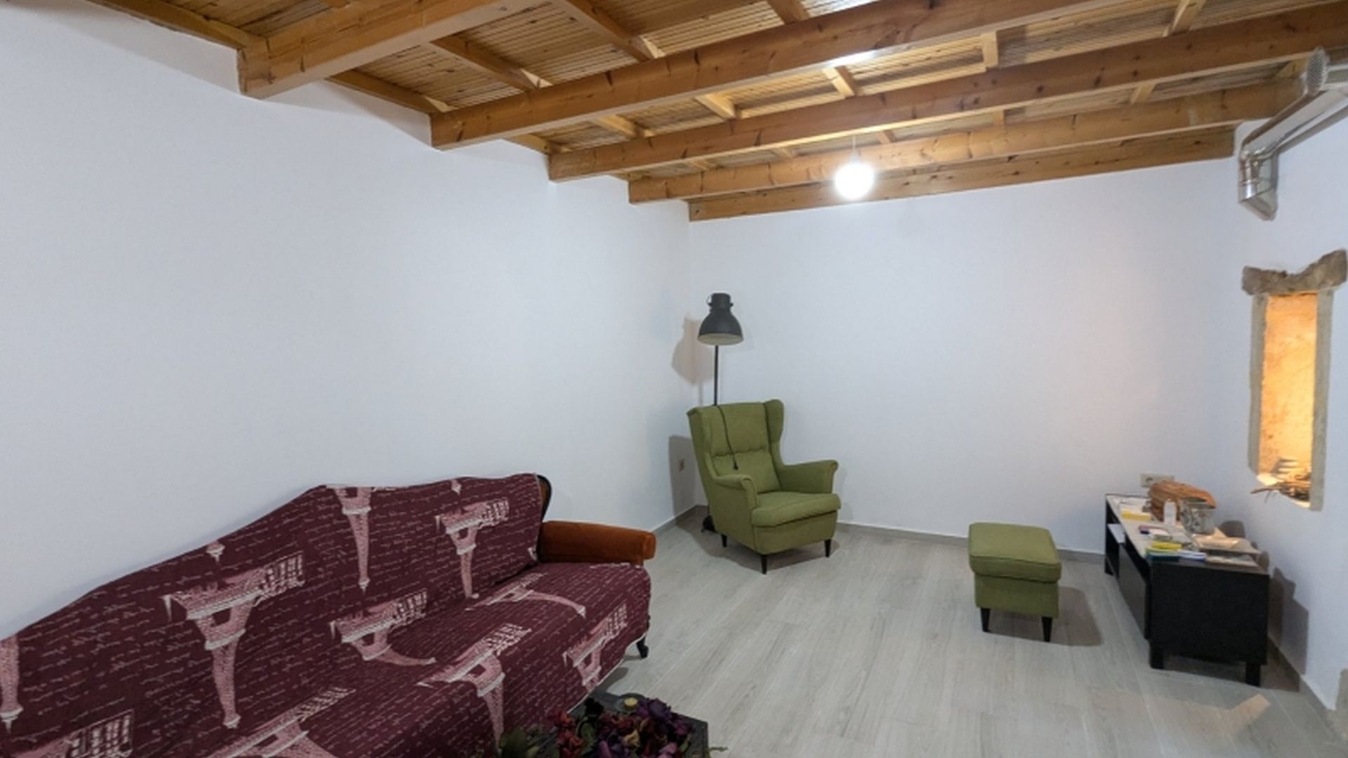Η κατοικία ανακαινίστηκε το 2021 διατηρώντας τα παραδοσιακά της χαρακτηριστικά, όπου συνδυάζεται το ξύλο με τις πέτρινες λεπτομέρειες. Αποτελείται απο δυο επίπεδα, το ισόγειο συνολικής επιφάνειας 60 τ.μ., όπου βρίσκεται ένας ενιαίος χώρος σαλόνι-κουζίνα και ένα μπάνιο, καθώς και από τον πρώτο όροφο ,ο οποίος διαθέτει ένα ευρύχωρο υπνοδωμάτιο.