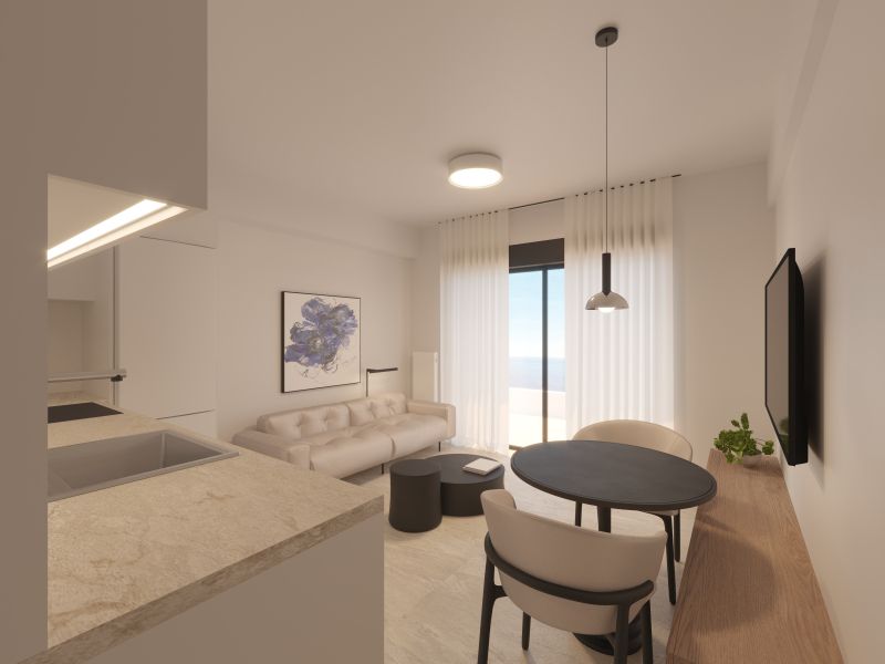Το ακίνητο ξεχωρίζει για τον μοντέρνο σχεδιασμό του και την προσεγμένη διαρρύθμιση των χώρων. Αποτελείται από μια λειτουργική κουζίνα που ενοποιείται αρμονικά με το ευρύχωρο και φωτεινό καθιστικό, ένα άνετο υπνοδωμάτιο και ένα κομψό, σύγχρονο μπάνιο.
