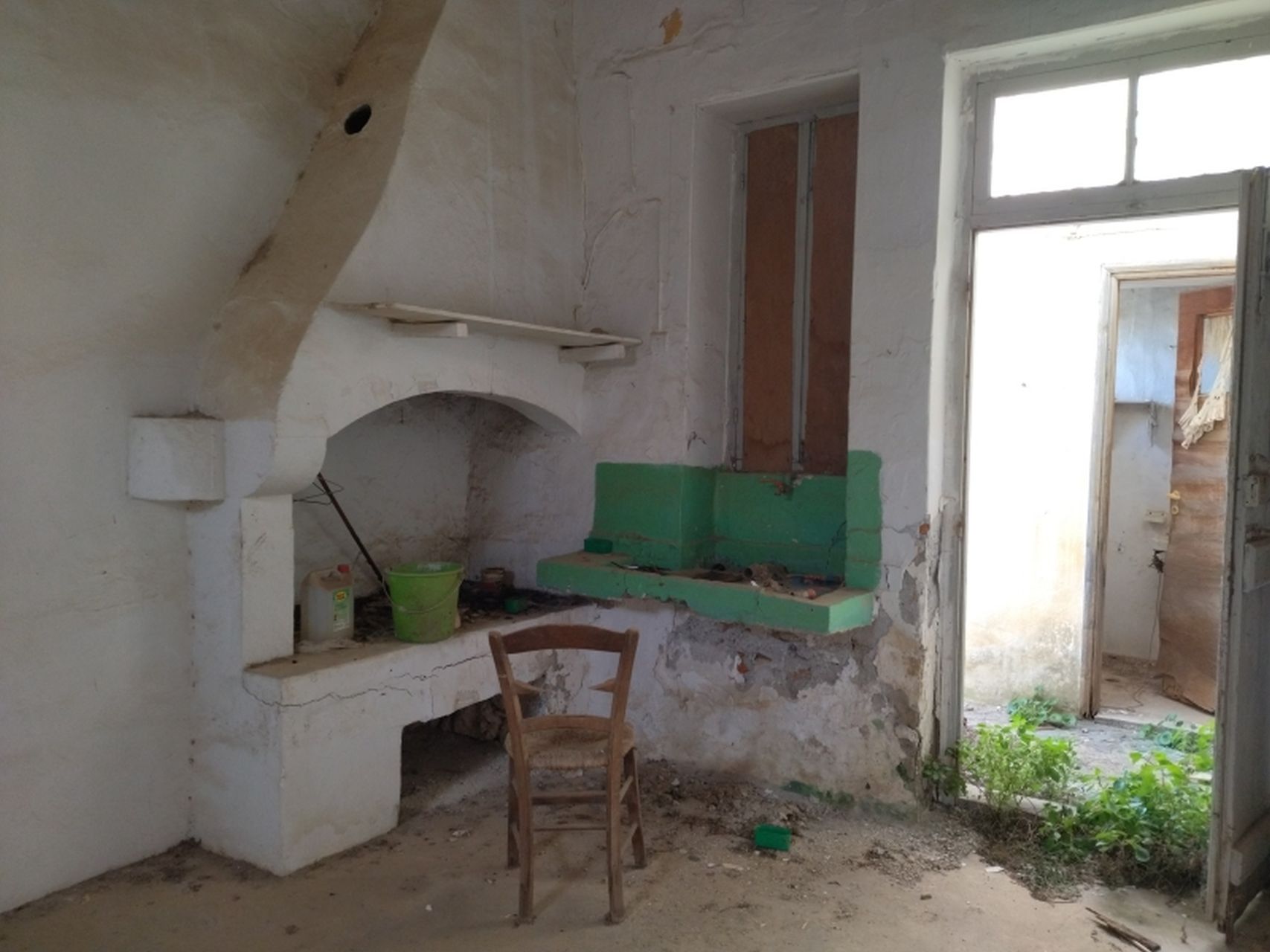 Η τρίτη είσοδος του σπιτιού οδηγεί απευθείας σε έναν μικρό εξωτερικό κήπο. Ανεβαίνοντας στον πρώτο όροφο, βρίσκεται η κουζίνα με το τζάκι και στη συνέχεια ένα άνετο σαλόνι που έχει πρόσβαση στη μεγάλη βεράντα του σπιτιού με όμορφη θέα προς την κεντρική πλατεία του χωριού αλλά και σε ένα μικρότερο μπαλκόνι. Στο επίπεδο αυτό υπάρχουν και δυο ευρύχωρα υπνοδωμάτια με πρόσβαση στην πίσω βεράντα καθώς και ένα λουτρό. Με τις κατάλληλες παρεμβάσεις, διατηρώντας ενδεχομένως κάποια ξεχωριστής ομορφιάς στοιχεία, όπως τα ξύλινα δοκάρια και τις καμάρες και τον παραδοσιακό πετρόχτιστο φούρνο, μπορεί να μετατραπεί σε ένα εξαιρετικό ακίνητο και να αξιοποιηθεί είτε για ιδιοκατοίκηση, είτε για επενδυτικούς σκοπούς. Η θέση του είναι πλεονεκτική, διότι το χωριό απέχει ελάχιστα από το κέντρο του Ρεθύμνου, ενώ δεν υστερεί σε τίποτα από την αγορά και τις παροχές μιας πόλης, τόσο σε υπεραγορές όσο και σε διασκέδαση.