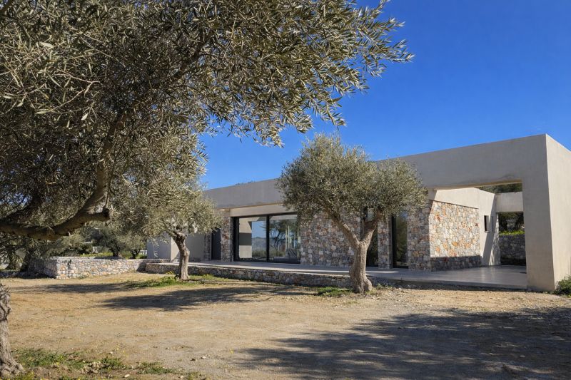 Η κατοικία έχει επιφάνεια 153 τ.μ. και βρίσκεται σε οικόπεδο 4.174 τ.μ. μέσα σε φυσικό τοπίο με ελαιώνες, προσφέροντας ιδιωτικότητα και ανοιχτή θέα στη φύση.