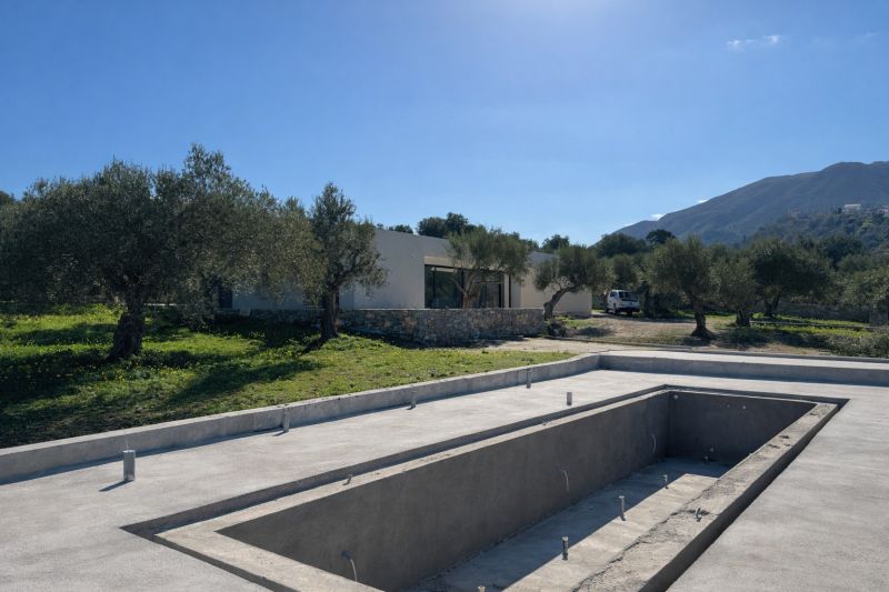 Νεόδμητη σύγχρονη βίλα με ιδιωτική πισίνα, διατίθεται προς πώληση, σε ήσυχη τοποθεσία λίγο έξω από το παραδοσιακό χωριό Καστέλλος.
